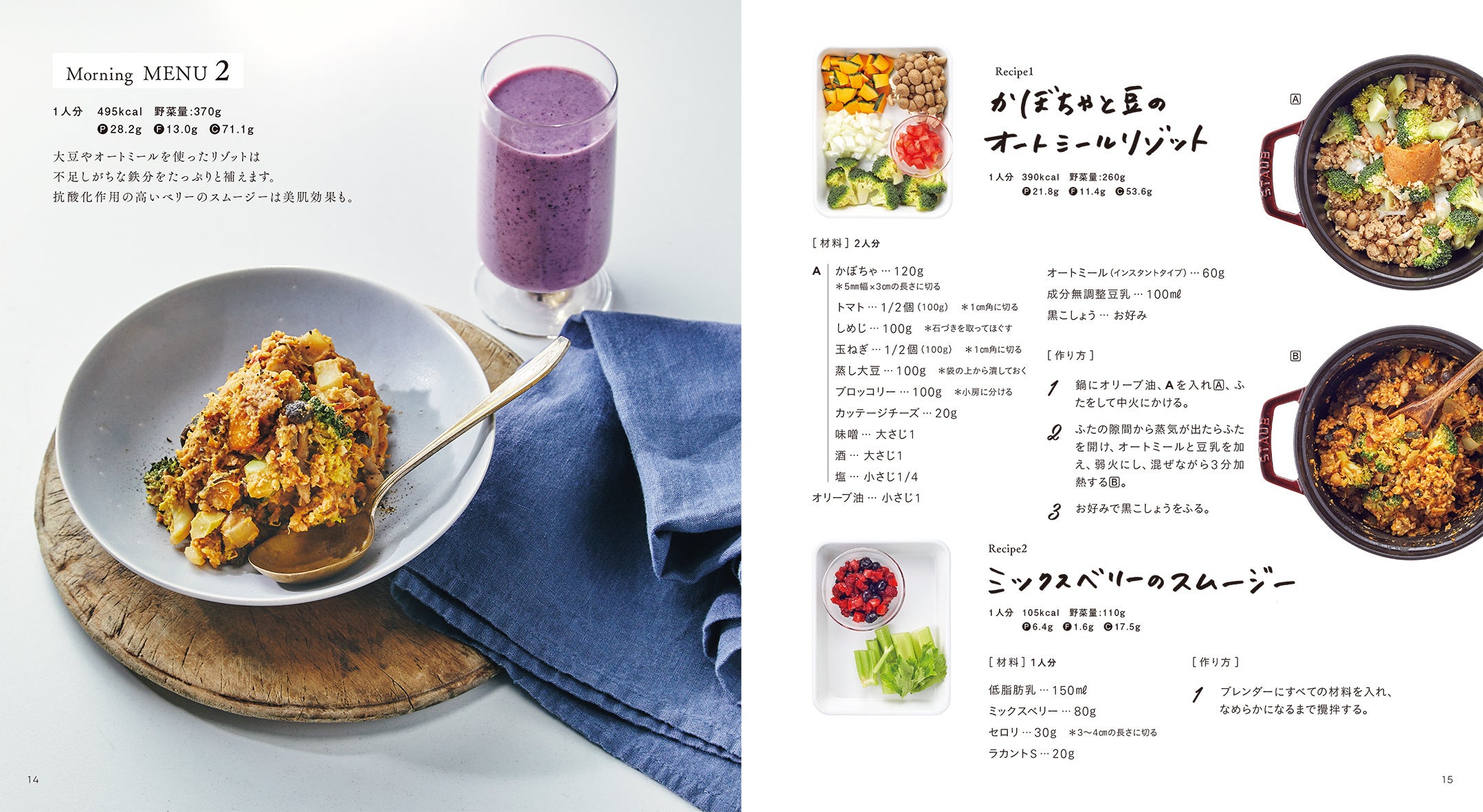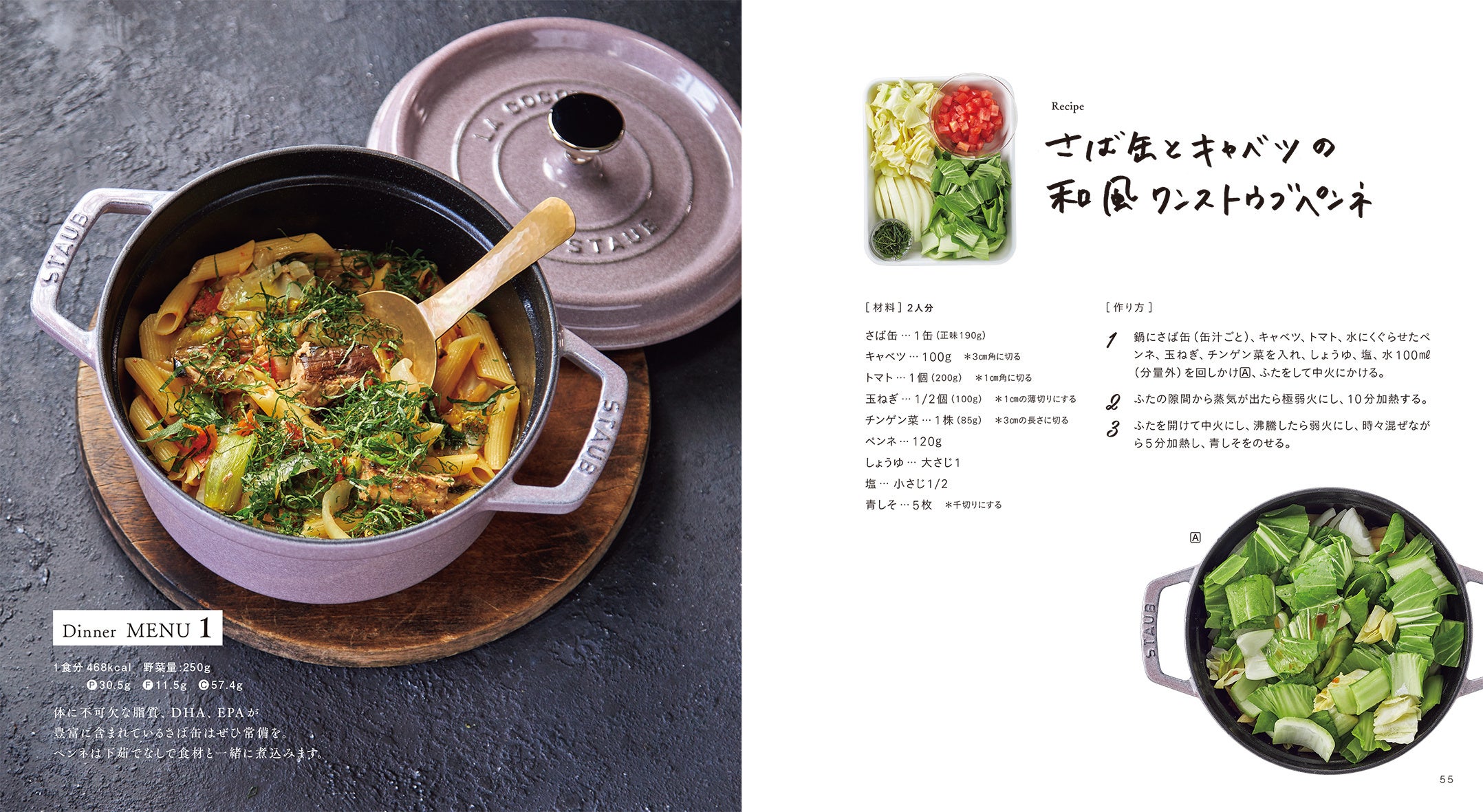 ストウブで旨味と栄養がギュッと詰まった、朝・昼・夜ごはん・おやつ、全48レシピ。献立は1食につき200g以上の野菜がとれて520kcal以下、毎日の献立に悩まない“野菜不足解消”レシピ本です。野菜200gの献立を食べることは、ダイエット、腸内環境改善、肌や細胞の老化予防、あらゆる病気の予防が期待でき、ヘルシーなのに食べ応えがある野菜たっぷりのメニューで“我慢しない食事”を提案します。