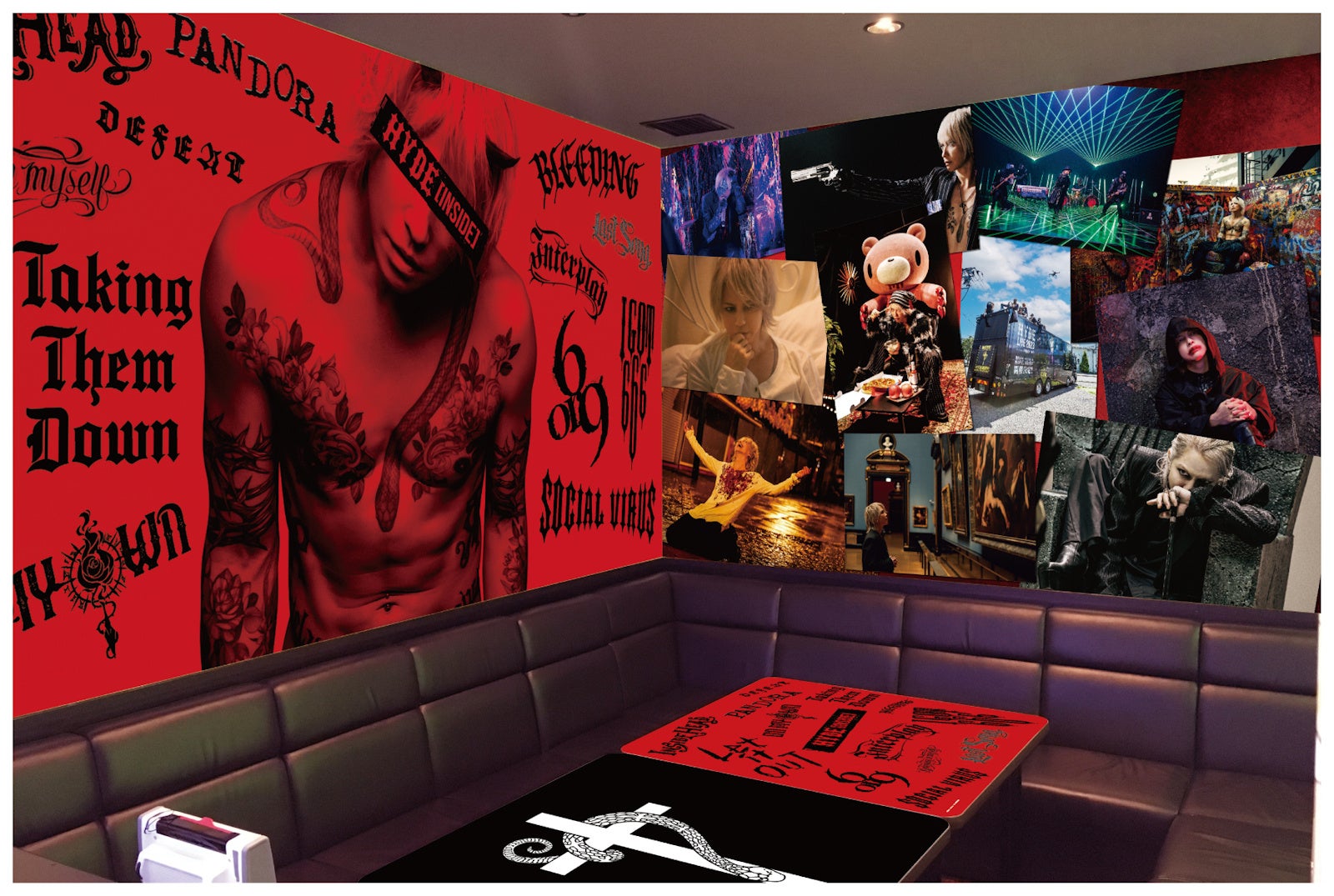 カラオケコラボルームは、ルーム内の壁面やテーブル、ドアに至るまで、「HYDE」の世界観で彩られ、ファンには堪らない空間となっております。