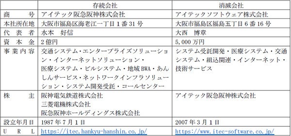 (1)方式:アイテック阪急阪神を存続会社、アイテックソフトウェアを消滅会社とする吸収合併