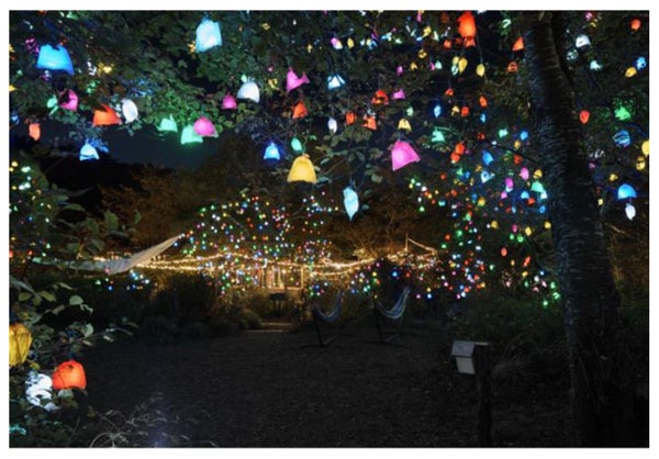 六甲高山植物園とROKKO森の音ミュージアムでは9月23日(金・祝)からの土日祝日限定で夜間営業を行い、夜間作品を公開するとともに一部作品のライトアップを行う「ひかりの森~夜の芸術散歩~」を開催します。