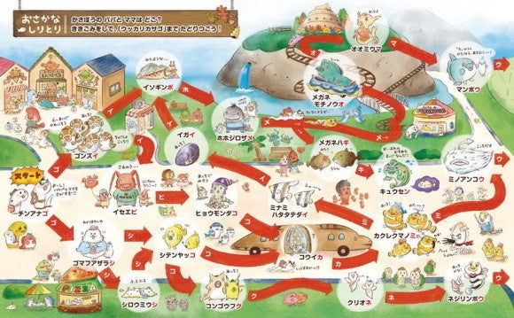 しりとりや迷路・絵さがしで楽しめる、おあそび絵本。