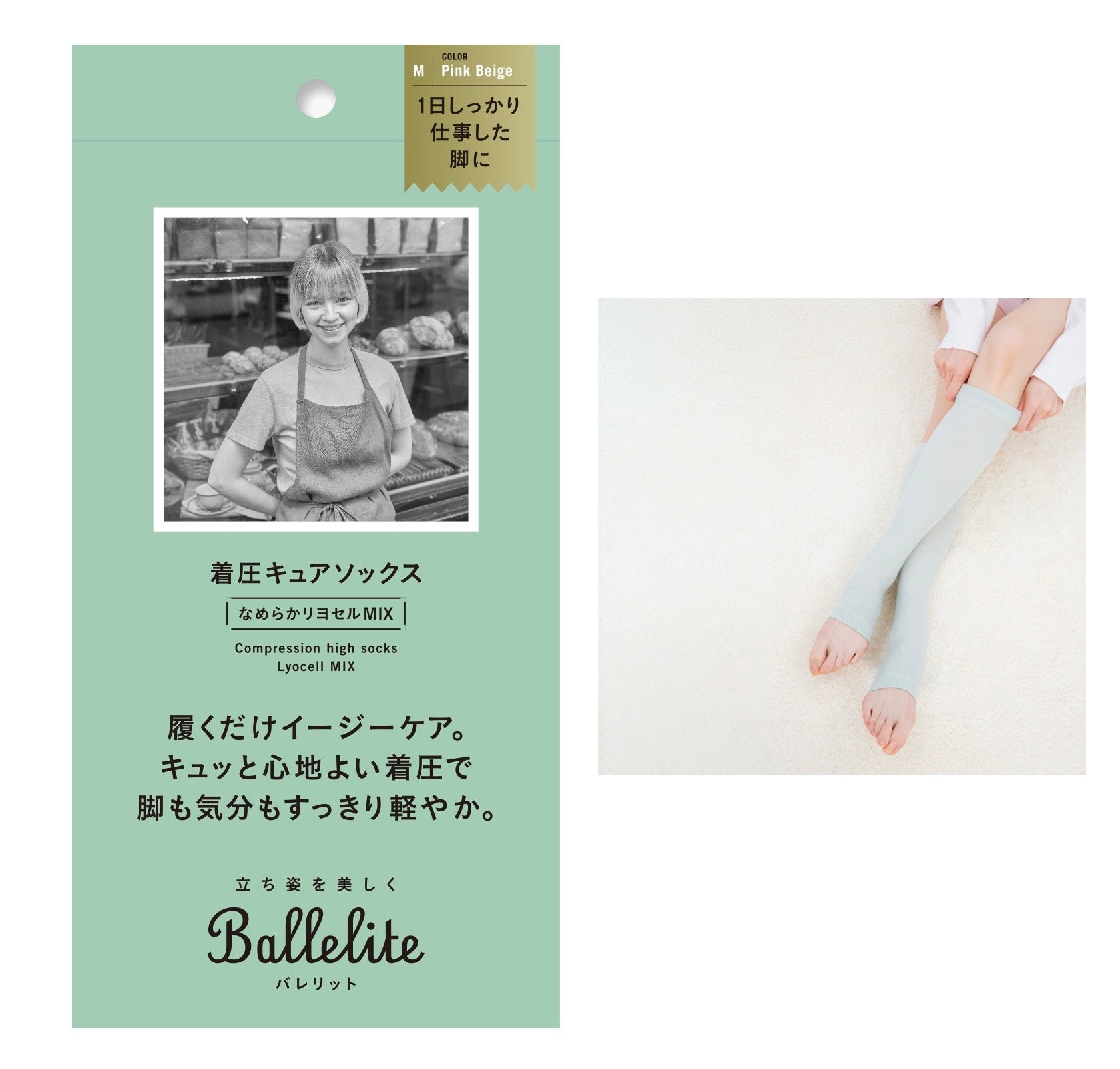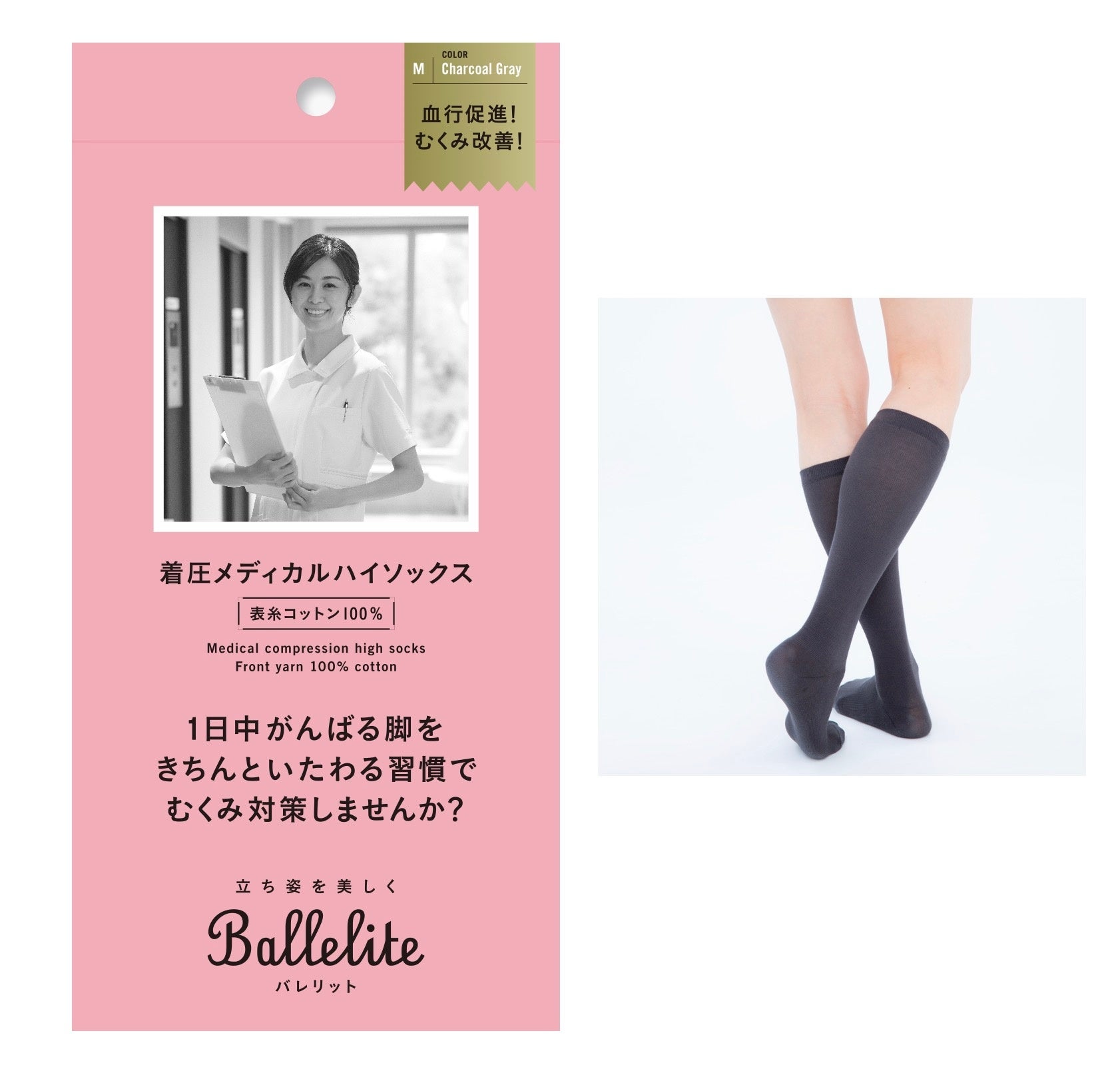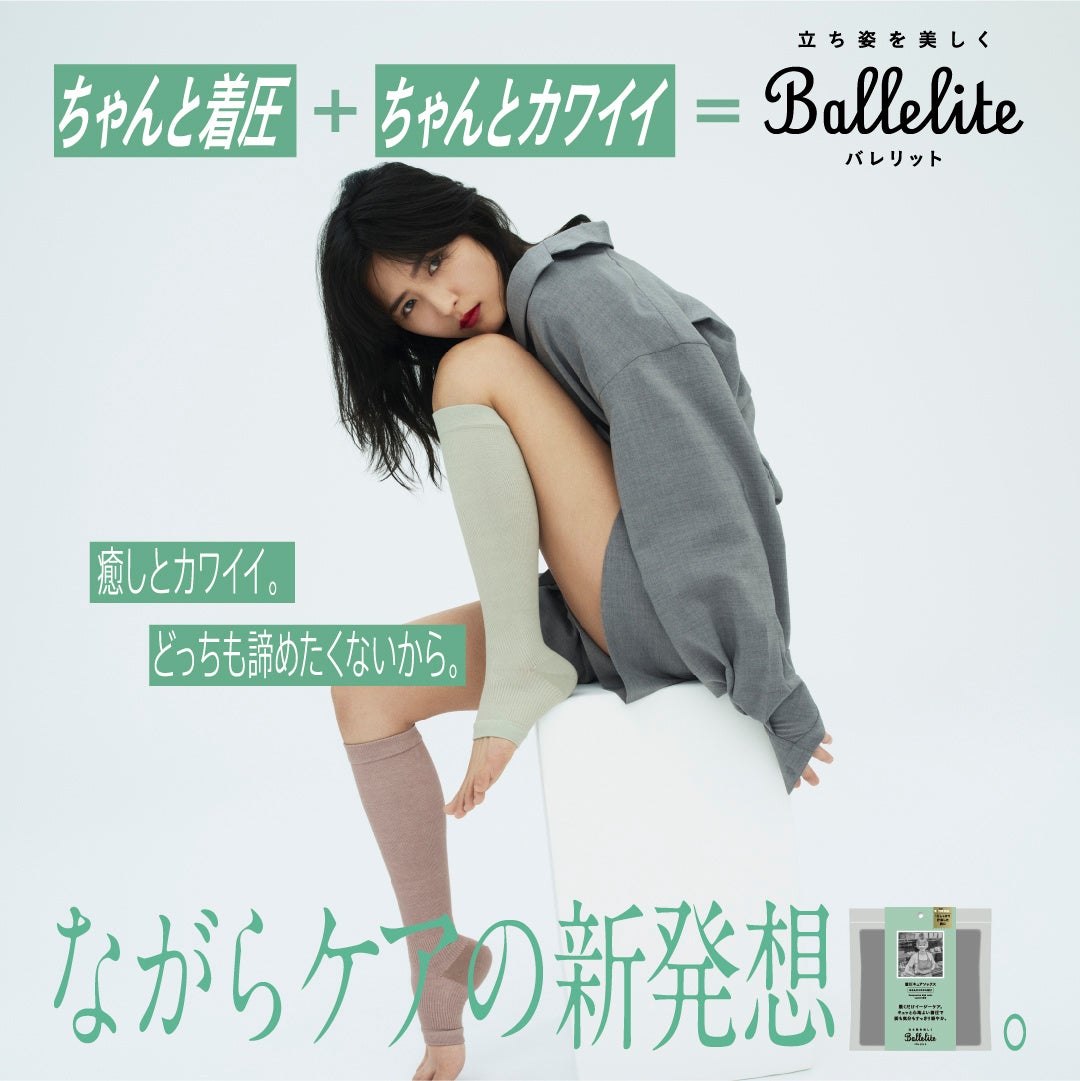 Balleliteは、キレイにありたいけどストイックにはがんばれない‥そんな立ち仕事の女性の気持ちに寄り添うブランドです。始まりは『スタッフの脚の疲れを取って笑顔にしたい』というマッシュグループの代表の想いからでした。周りを見渡すと、人前に立つ職種・バックヤードにいる方問わず、キリがないほど世の中には日々立ち仕事に従事し、がんばる人たちがいました。そこで、老舗のレッグ・インナーウェアメーカーのグンゼとタッグを組み、お互いの得意分野を活かして、「立ち仕事の人のためのビューティーギア」の共同開発に至りました。