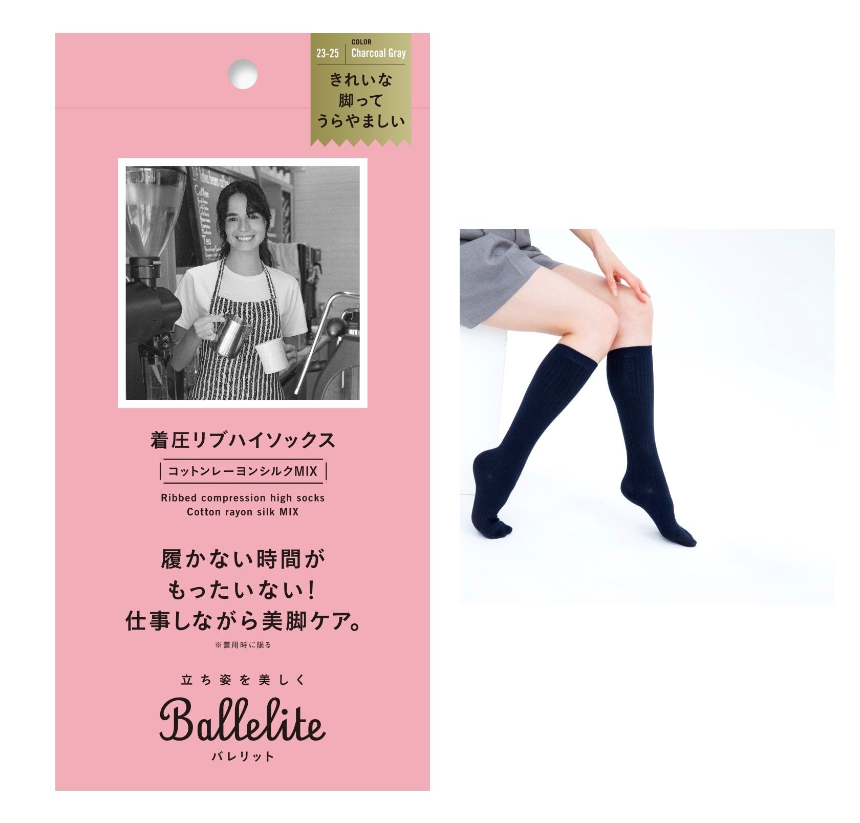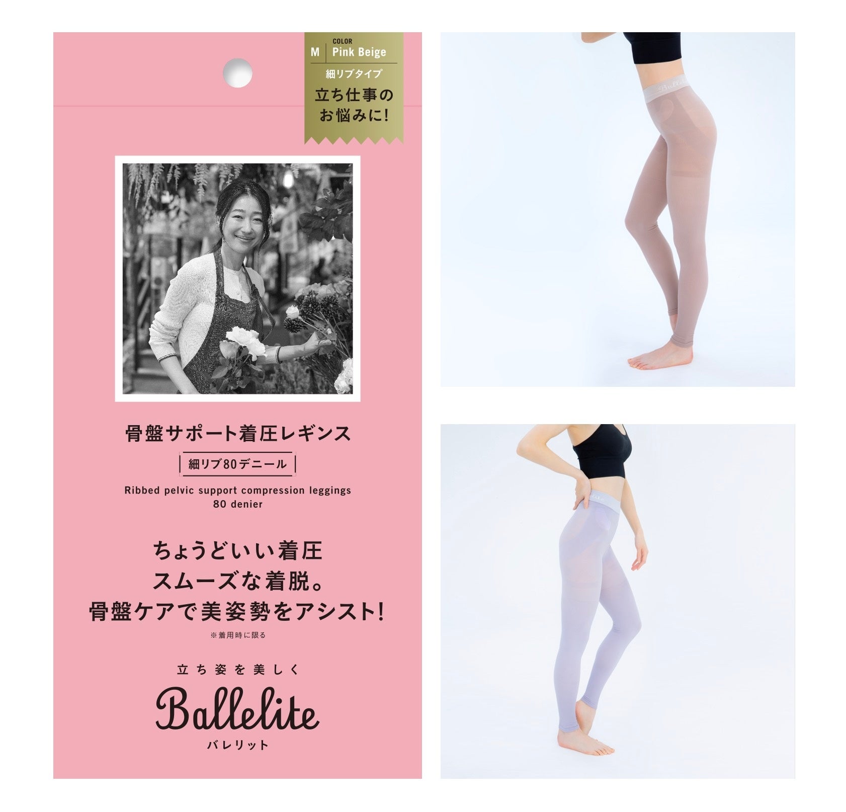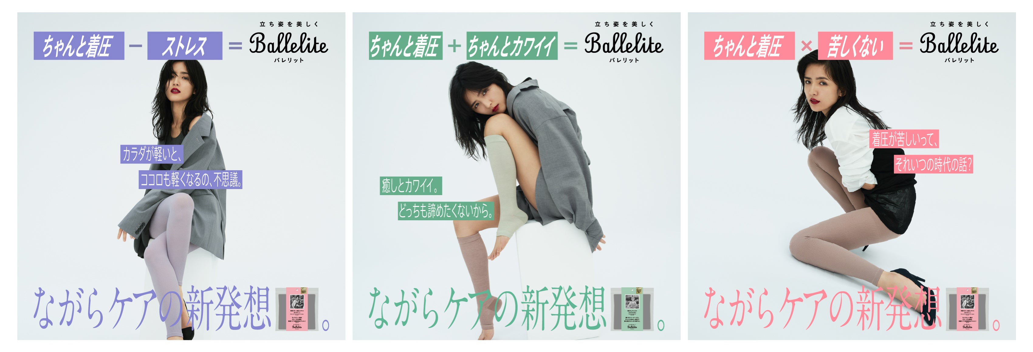 Balleliteは、キレイにありたいけどストイックにはがんばれない‥そんな立ち仕事の女性の気持ちに寄り添うブランドです。始まりは『スタッフの脚の疲れを取って笑顔にしたい』というマッシュグループの代表の想いからでした。周りを見渡すと、人前に立つ職種・バックヤードにいる方問わず、キリがないほど世の中には日々立ち仕事に従事し、がんばる人たちがいました。そこで、老舗のレッグ・インナーウェアメーカーのグンゼとタッグを組み、お互いの得意分野を活かして、「立ち仕事の人のためのビューティーギア」の共同開発に至りました。