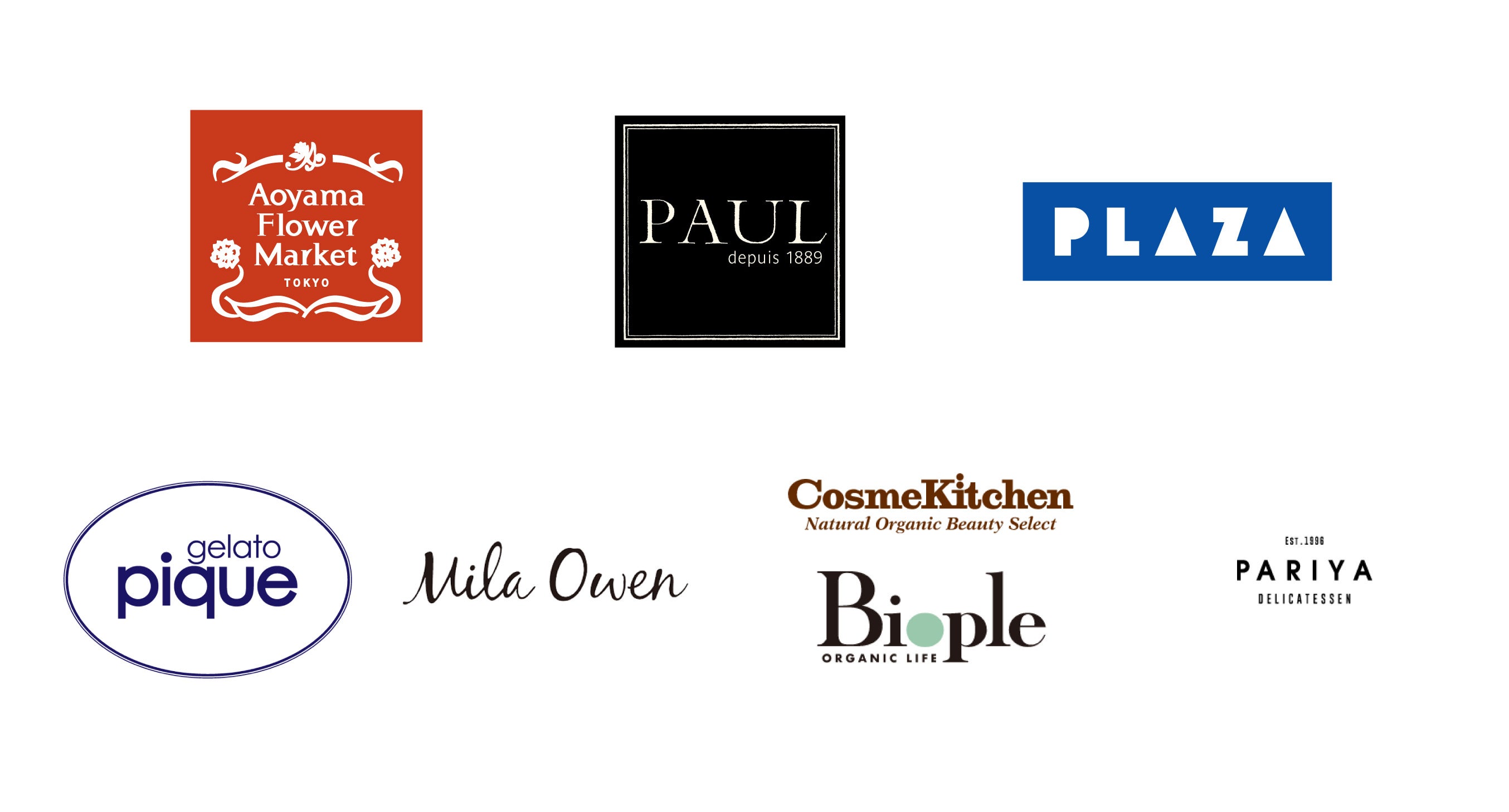 協力企業・ブランド:青山フラワーマーケット、PAUL、PLAZA、gelato pique、Mila Owen、CosmeKitchen、Biople、PARIYA