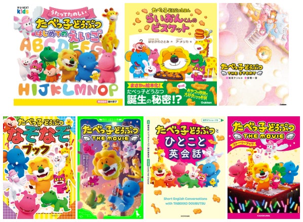 「たべっ子どうぶつ」の物語は映画の公開に合わせ、書籍のかたちでも広がりを見せました。小説、ストーリーブック、英会話やなぞなぞなど、年齢や興味に合わせて楽しめる多彩なラインアップが展開され、その多くをU-NEXTでも楽しむことができます。