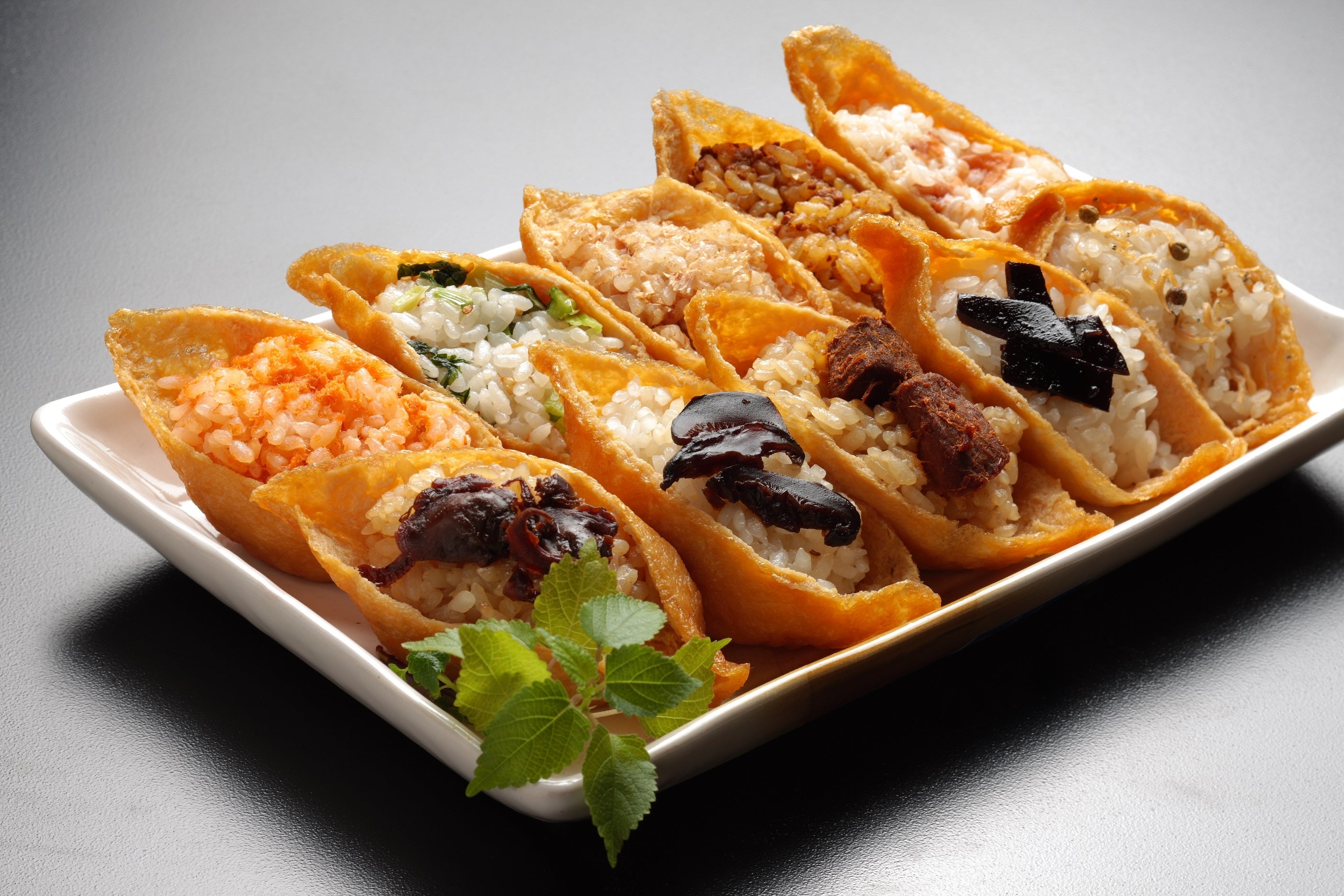 明治初期、大阪市西区江戸堀に居を構えていた大和屋清七が、鰊などの甘露煮を手掛けたのが始まりの<江戸三・大和屋>。関西の味付けで、あっさりとふっくら炊き上げたおあげで包んでいます。自慢の大和煮をはじめ、10種の具材を使った、江戸三・大和屋にしか作れないおいなりさんです。