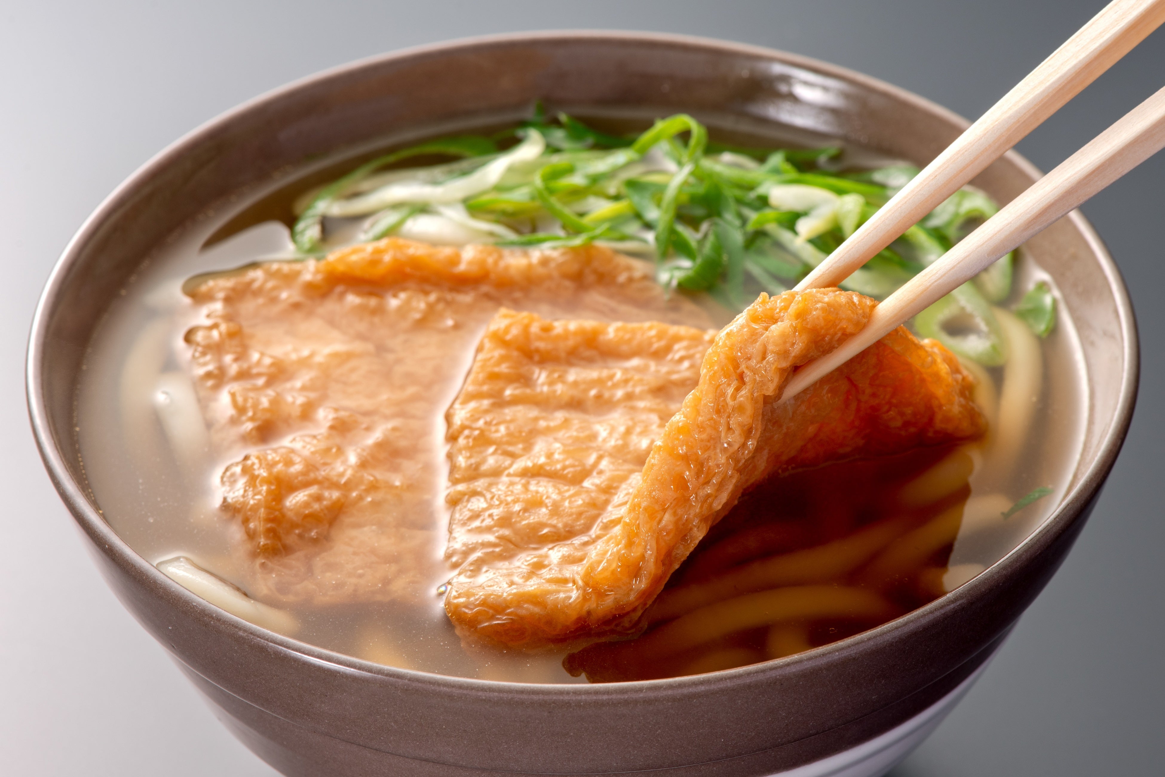 昭和21年に大阪の中心地・道頓堀に創業したうどん店<道頓堀 今井>。定番人気のきつねうどんは、コクと旨味のある「おだし」、もっちりとした「うどん」、ふっくら炊き上げた「きつね揚げ」の三位一体のおいしさを堪能できます。