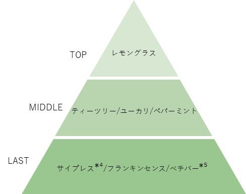 レモングラスを基調とした清々しくすっきりした香りに、ペパーミントがさらに爽やかな印象へと導きます。