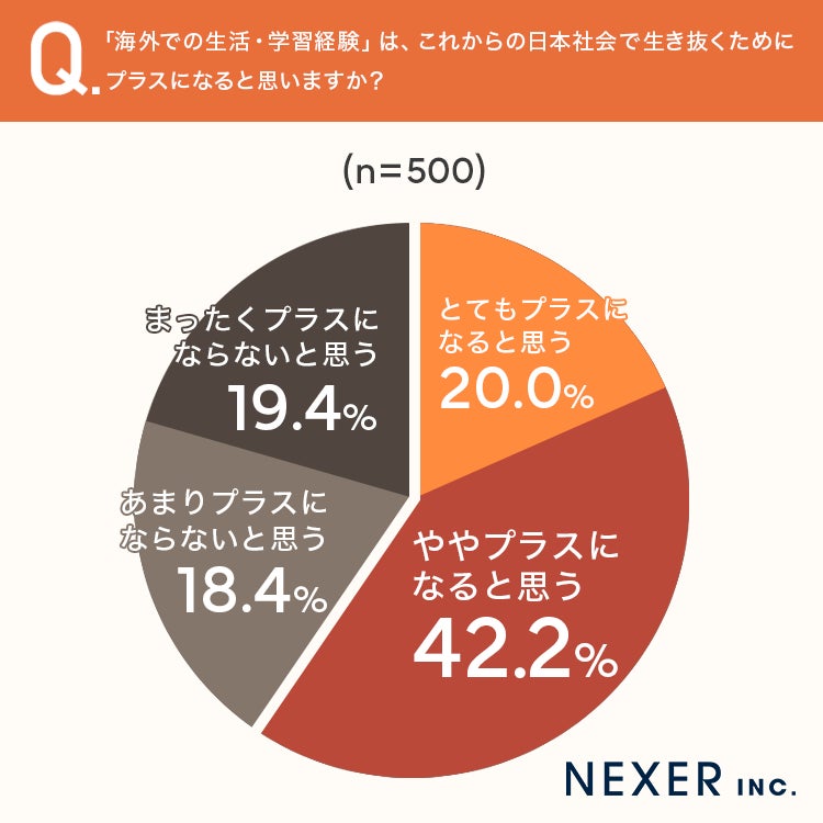 続いて、「海外での生活・学習経験」がこれからの日本社会で生き抜くためにプラスになると思うかを聞いてみました。