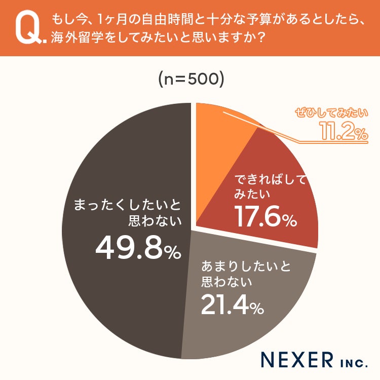 ■28.8%が「1ヶ月の自由時間と予算があれば海外留学をしてみたい」と回答