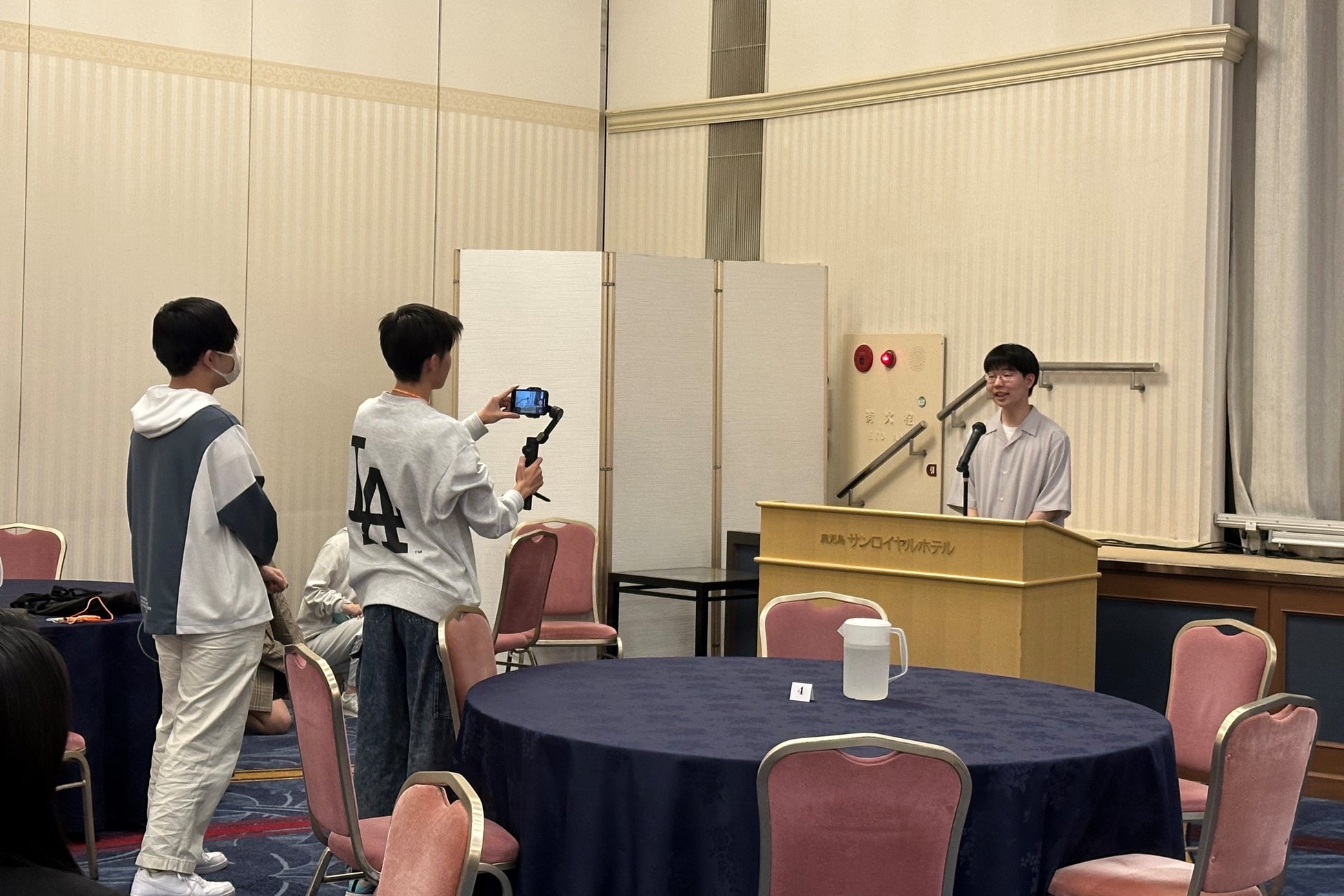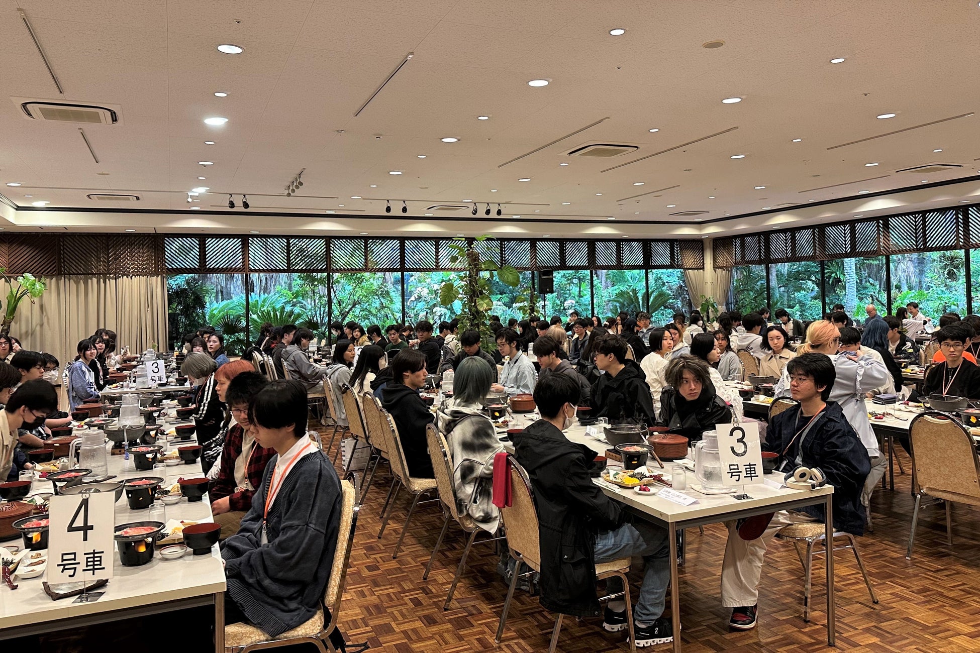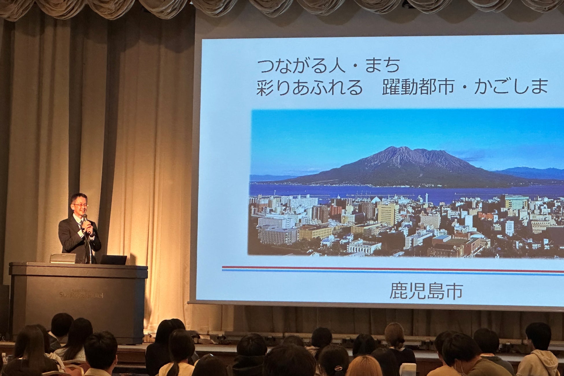 鹿児島空港到着後は昼食を取り、鹿児島市内を見学してから宿泊先である鹿児島サンロイヤルホテルへ向かいました。ホテル到着後は夕食の時間まで自由行動。夕食の時間に、全学生と教職員が初めて対面で集まりました。夕食後45分間の休憩時間をはさみ、夜のセミナーを開始しました。