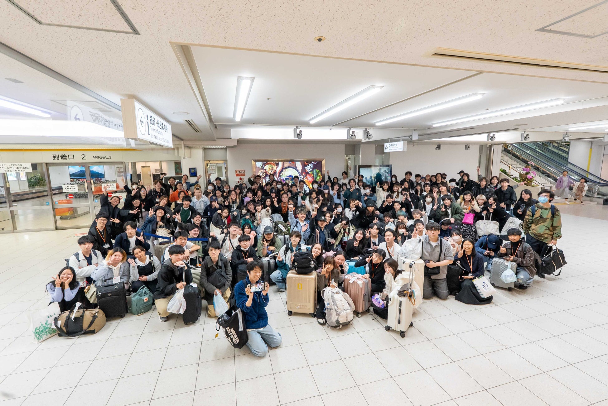 今回の研修合宿では利用する航空会社・便名によりグループをA班・B班・C班の3つに分けました。早朝に羽田空港に集合し、3便に分かれて278名の学生と引率スタッフ14名の合計292名が鹿児島へ向け出発しました。