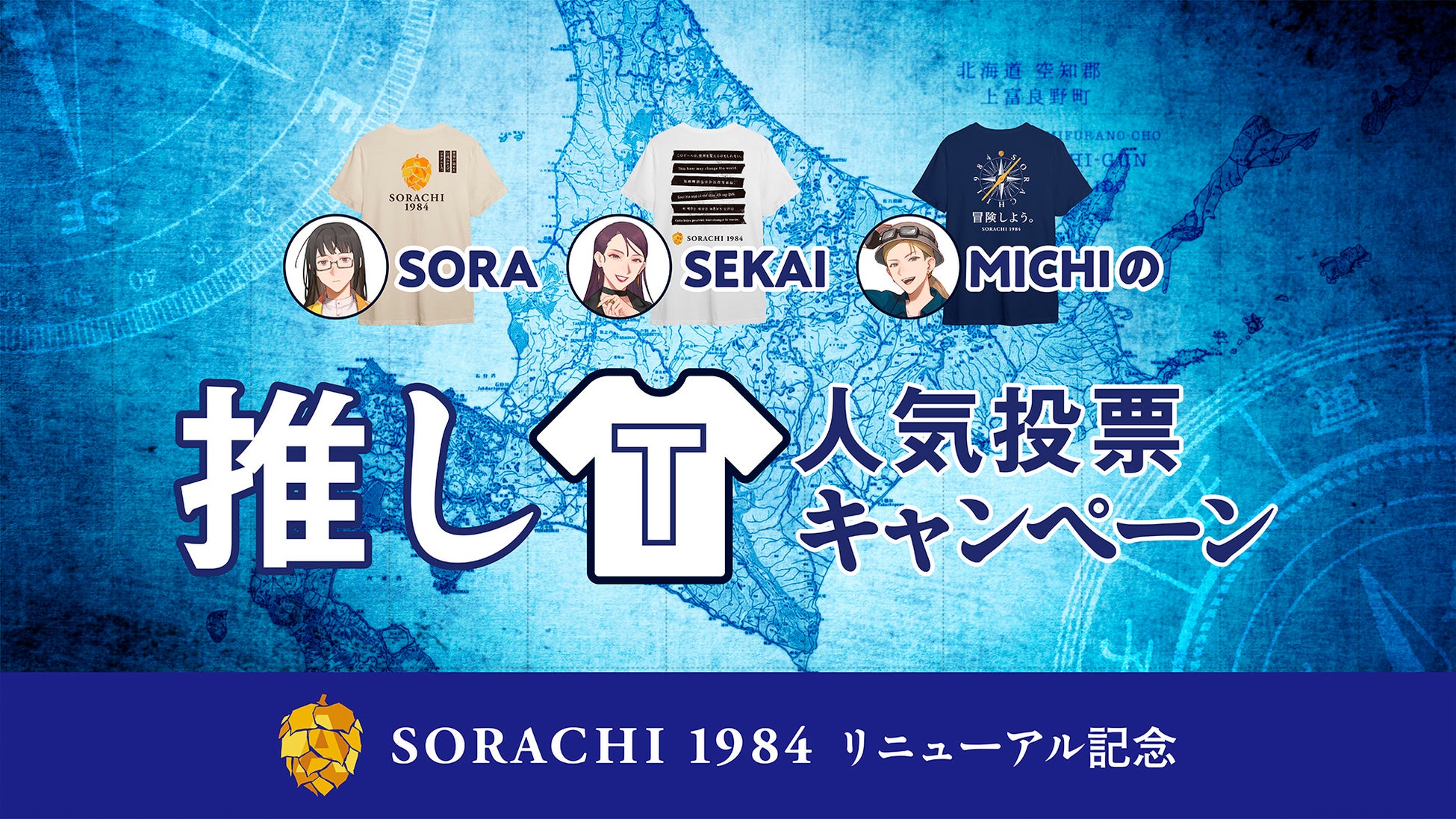 サッポロホールディングス(株)のグループ企業であるサッポロビール(株)は「サッポロ SORACHI 1984」のリニューアル(注1)記念キャンペーン第1弾として、3月20日より「SORA SEKAI MICHI(注2)の推しTシャツ人気投票」キャンペーンを実施します。