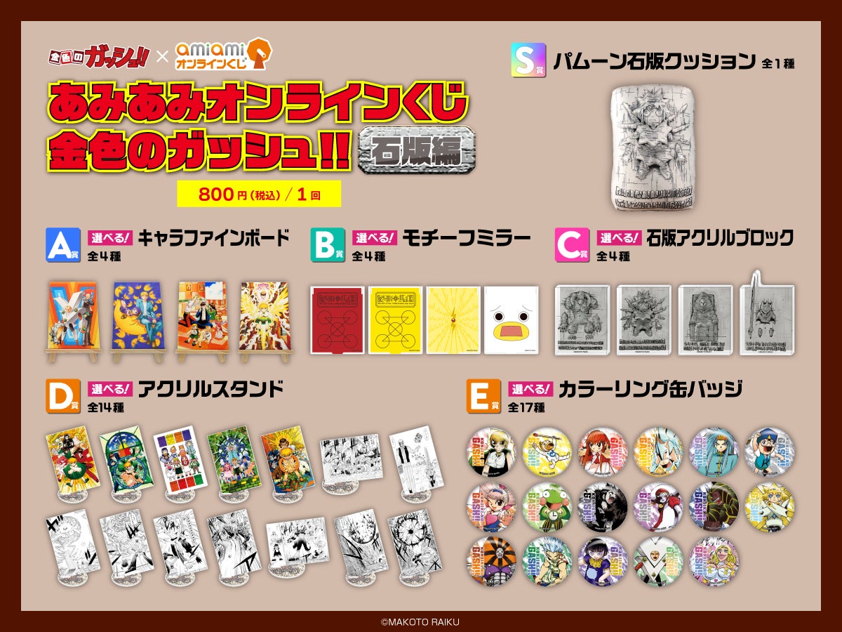 大網株式会社(本社・東京都文京区)より、【あみあみオンラインくじ 金色のガッシュ!! 石版編】が登場いたします。
