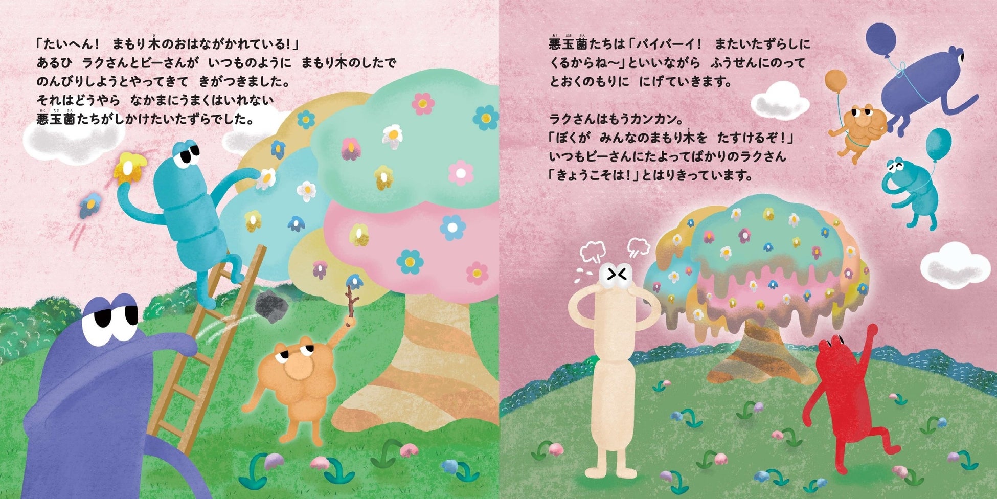 かわいい菌のキャラクターが大奮闘!『ラクさんビーさんふうせんのたび がんばれ善玉菌』12月18日(水)発売