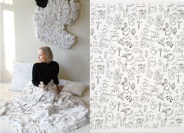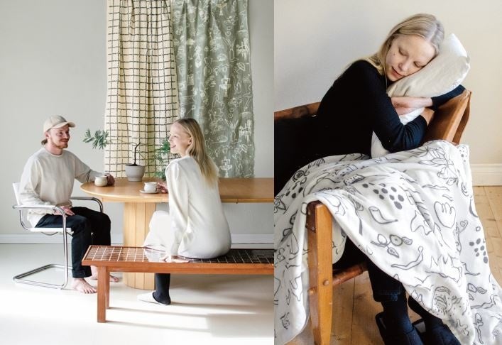 サーナとオッリは、フィンランドで最も古く風光にとむ町、トゥルクを拠点に活動するデザインユニット。正直であること。タイムレスであること。そして人の手を感じることをモットーに、美しく、地球へ配慮したテキスタイルを、熱意を持って生み出しています。彼らは日々、自然とアートを抱き、あたりまえに愛を注ぎながら、ここでの暮らしを、ぞんぶんに楽しんでいます。そんなサーナとオッリのライフスタイルに深く共感し、彼らから生まれたデザインを生かしてフェリシモオリジナルアイテムに仕上げました。