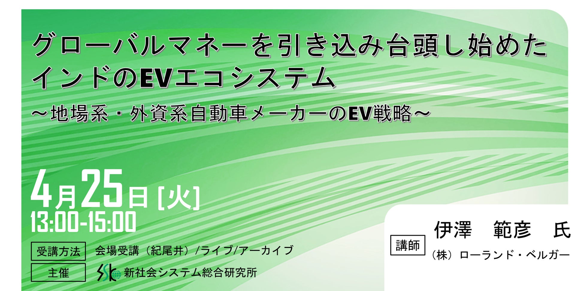「台頭し始めたインドのEVエコシステム」と題して、株式会社ローランド・ベルガー プロジェクトマネージャー 伊澤 範彦氏によるセミナーを2023年4月25日(火)に開催!!
