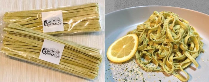 愛知県の農園で採れたディルというハーブを練り込んだパスタで、ハーブの香りともちもちの食感を楽しめると何度も完売・再販を繰り返している商品です。「結婚を迎えるおふたりの絆がパスタのように永く続きますように」という想いから、ご来店されるお客様への配布ギフトにこの商品を選びました。