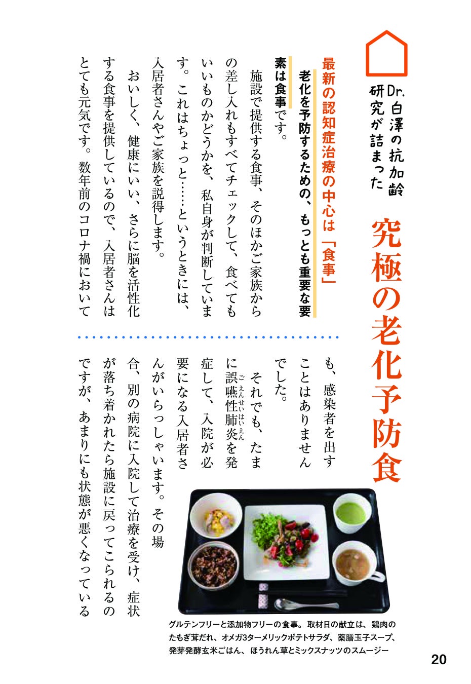 白澤氏が代表をつとめるホームでは、「毎日食べたい必須の食材」を中心に、脳にいい食材や食べ方をとりいれていますが、「食事は、最先端の認知症治療であり、寝たきりになることなく、元気で幸せに生きるためにもっとも大切なこと」だと白澤氏は言います。