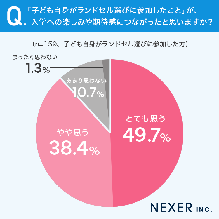さらに、子ども自身がランドセル選びに参加したと回答した方に、その経験が入学への楽しみや期待感につながったと思うかを聞いてみました。