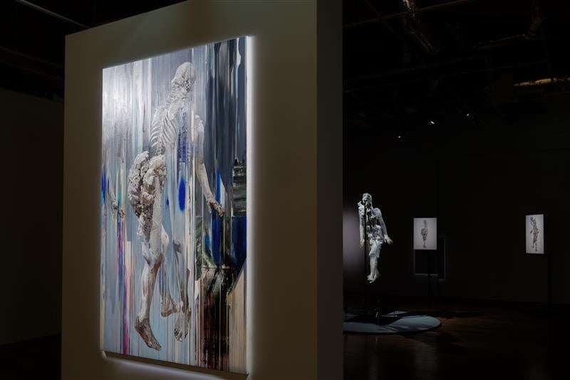 9月にエッセイ『死んでいるのに、おしゃべりしている!』(柏書房)を上梓したばかりの若手川柳作家・暮田真名さんが、埼玉県立近代美術館で開催された「Nerhol 種蒔きと烏 Misreading Righteousness」展(2025年7月12日~10月13日)を訪ね、展示の中に埋め込まれたNerholのメッセージを、宇宙人のような視点で発掘。乱反射するイメージの森に身体ごと分け入り、軽妙な川柳とショート・エッセイを寄稿してくださいました。「芸術新潮」ではbranchが、「GOAT」ではcarve outがキーワード。どちらもNerholのシリーズ作品のタイトルです。暮田さんの宇宙人風ファッションにもご注目ください。
