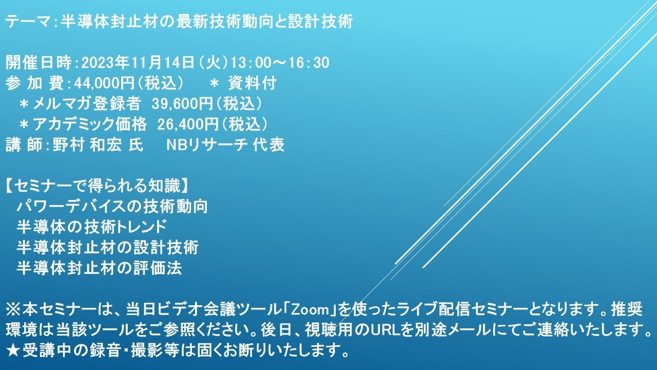 【ライブ配信セミナー】半導体封止材の最新技術動向と設計技術 11月14日(火)開催 主催:(株)シーエムシー・リサーチ
