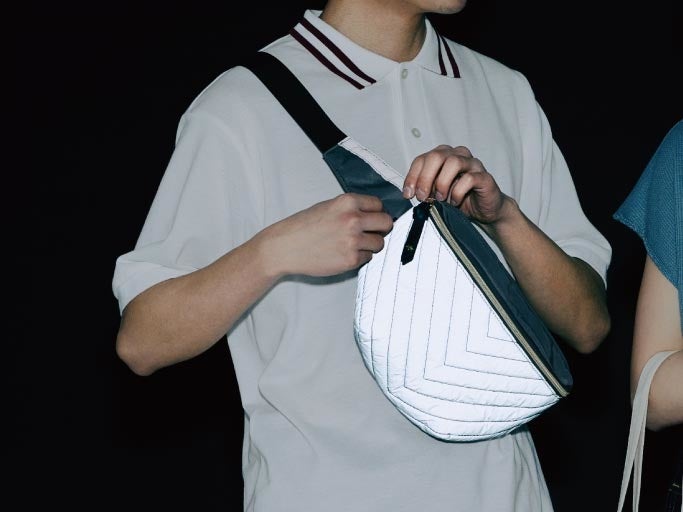 運転者に早めに歩行者自身の存在を知らせることで交通事故防止に役に立つ、リフレクター(反射)素材を使用したファッションアイテム。