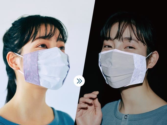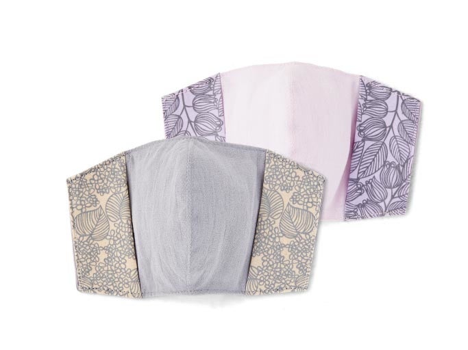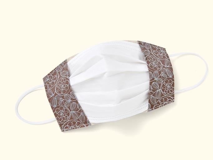 不織布マスクを見せながら、布マスクの着け心地にしてくれるマスクカバーです。昼間はかわいい花柄プリント。夜道では車のライトに反射して、居場所を車の運転者に早めに知らせます。色・柄のバリエーションは3種類。