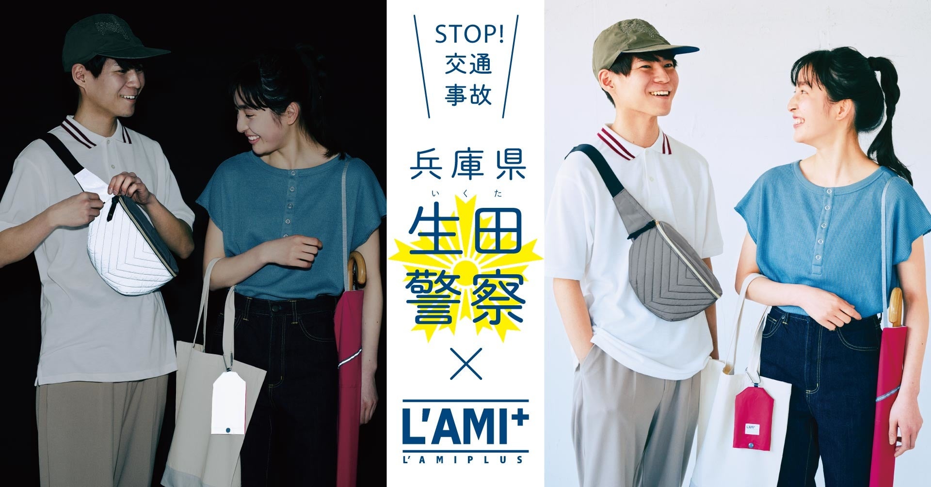 株式会社フェリシモ(本社:神戸市中央区 代表:矢崎和彦)が展開する、わたし時間も、かぞく時間も笑顔にしてくれる相棒みたいな雑貨をお届けするブランド「L’AMI+[ラミプリュス]」は、兵庫県生田(いくた)警察署(所在地:神戸市中央区、生田警察署長 浪花和志)とコラボしたアイテム「車のライトに当たってお知らせ 夜道で光る リフレクターボディーバッグ」「水分を吸収しながらスマートIN! 隣の人も自分もぬれないスリム傘袋〈リフレクター〉」「不織布マスクにセットで 肌ごこちアップ 肌側コットン100%マスクカバー〈リフレクター〉」を発表、5月10日よりウェブ販売を開始しています。自動車のヘッドライトなどの光を反射する、リフレクター素材を使用したアイテムを身につけることで、夜間の歩行時に、車の運転者に早めに自分の存在を知らせることができ、交通事故防止に効果的です。