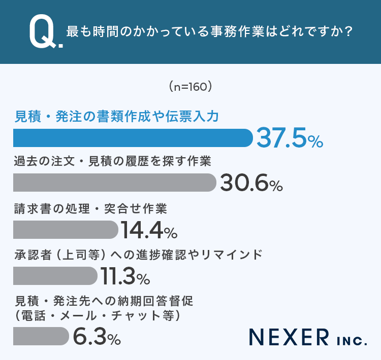 最も多かったのは「見積・発注の書類作成や伝票入力」で37.5%でした。