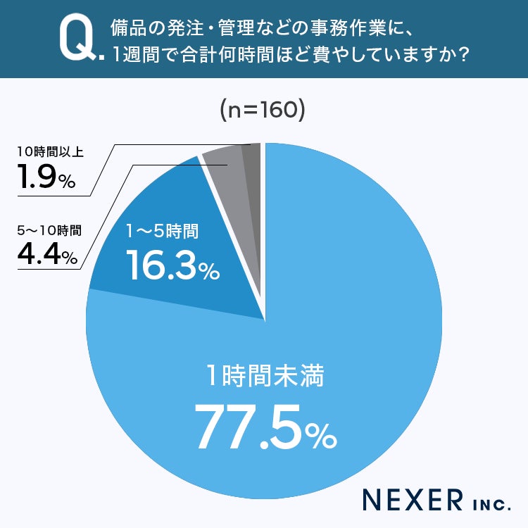 ■77.5%が、備品の発注・管理の事務作業に「週1時間未満」と回答
