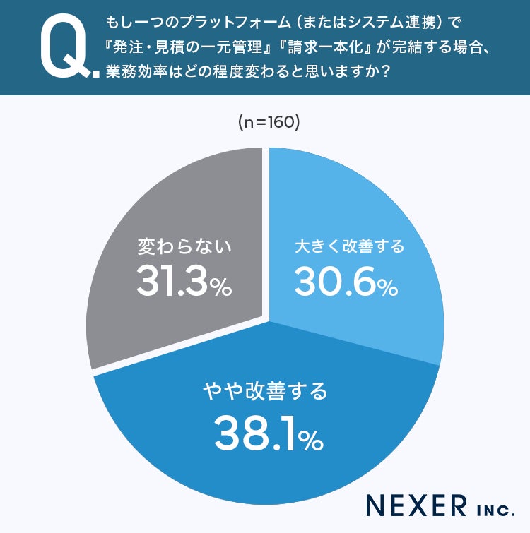 質問6:もし一つのプラットフォーム(またはシステム連携)で『発注・見積の一元管理』『請求一本化』が完結する場合、業務効率はどの程度変わると思いますか?