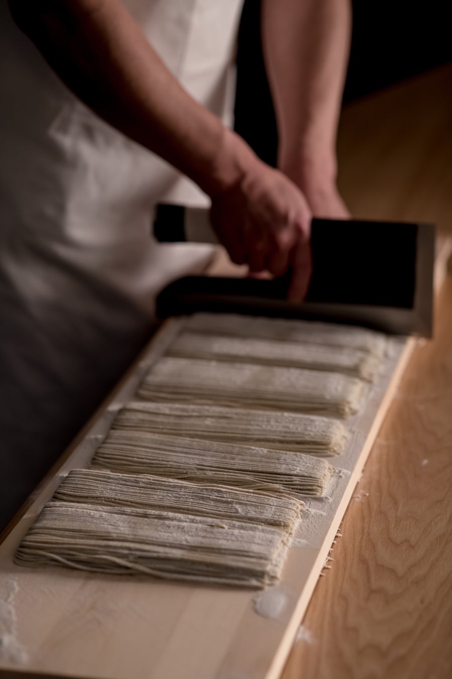 当イベントでは、はじめに「麺処 NAKAJIMA」料理長によるそば打ちの実演を見学していただきます。ご見学後は香り高い「2種類の新そば」を中心とした会席をお愉しみいただけます。本フェアでは、トントン響く心地よい軽快なリズムを刻みながらのそば切りを間近で見られるのも、イベントの魅力の一つです。さらに、粉を振るう、そば粉と小麦粉を混ぜる、水まわしから混ぜるなど、そば打ちの各工程でのポイントを分かりやすくご説明します。最初はつゆや薬味を使わず、そのまま召し上がっていただくのが蕎麦本来の召し上がり方です。また、薬味はつゆに浸さず、蕎麦の上に乗せて召し上がるのも美味しい食べ方の一つ。打ち立て、茹でたてのそばを口に入れた瞬間に広がるそばの香りと食感を五感でご堪能ください。