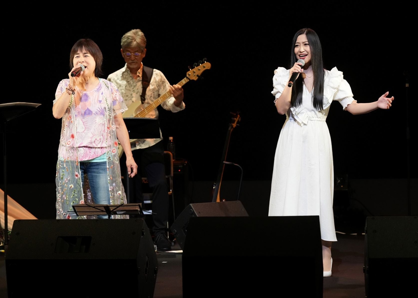門松みゆきが地元・小田原市の小田原三の丸ホールで初のワンマンコンサート。カバー曲を中心に全16曲熱唱。白井貴子とコラボも