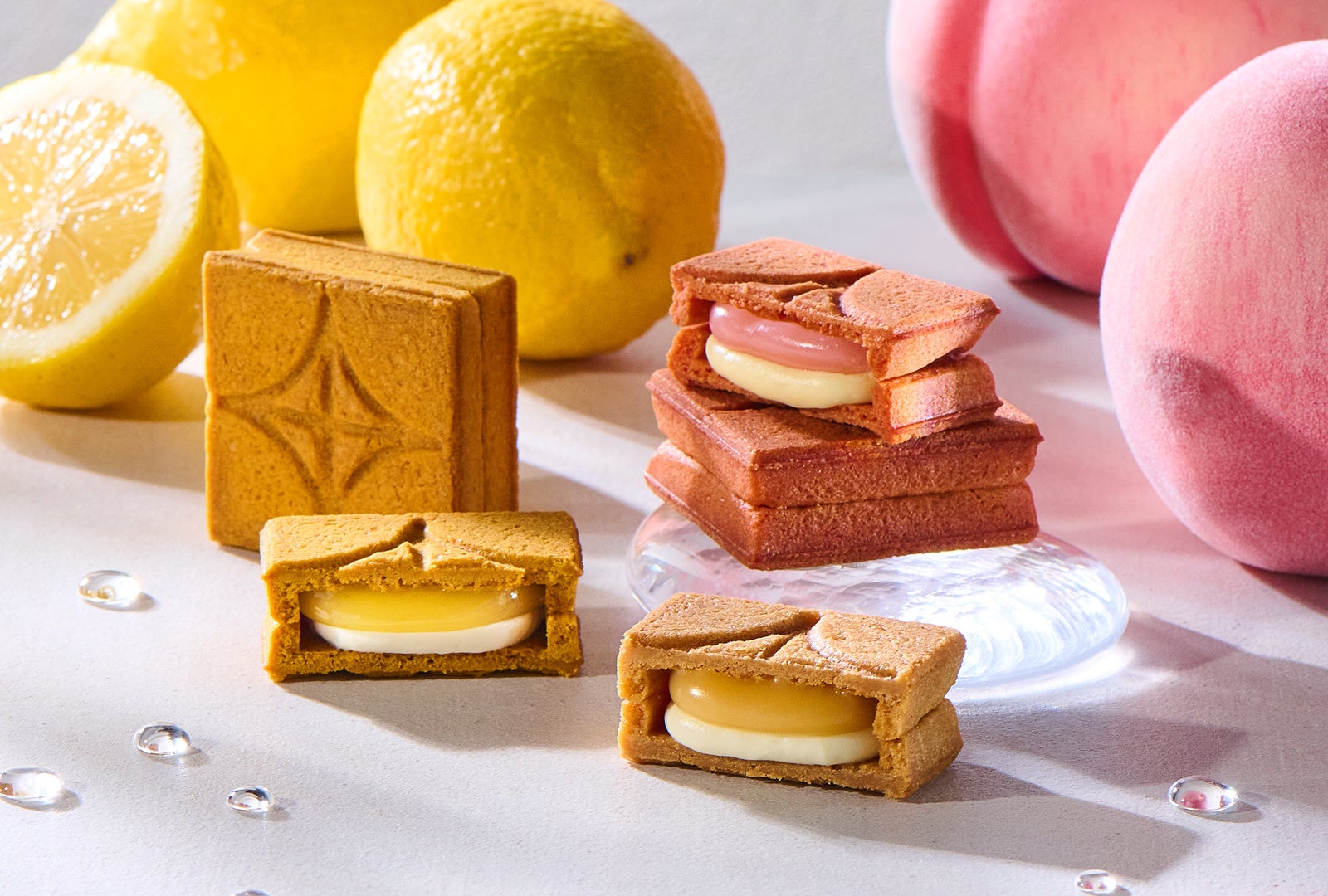 瀬戸内産レモンをふんだんに使用した〈檸檬〉のほか、新作の〈桃〉、定番の3種類のバターサンドを詰め合わせました。