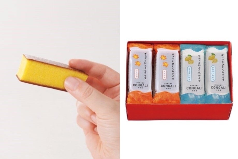 カステラの味はそのままに、ギュッと濃縮してひとくちサイズに。蜜がじゅわっとあふれるような、しっとり食感のミニカステラです。夏限定のシチリアレモン味と、カナダ産メープルシロップを使用したメープル味の2種類をご用意。シチリアレモン味は、イタリア・シチリア産のレモン果汁を加えた、ちょっぴり凍らせてもおいしく召し上がれる特別レシピで仕上げています。個包装なので食べやすく、手土産におすすめです