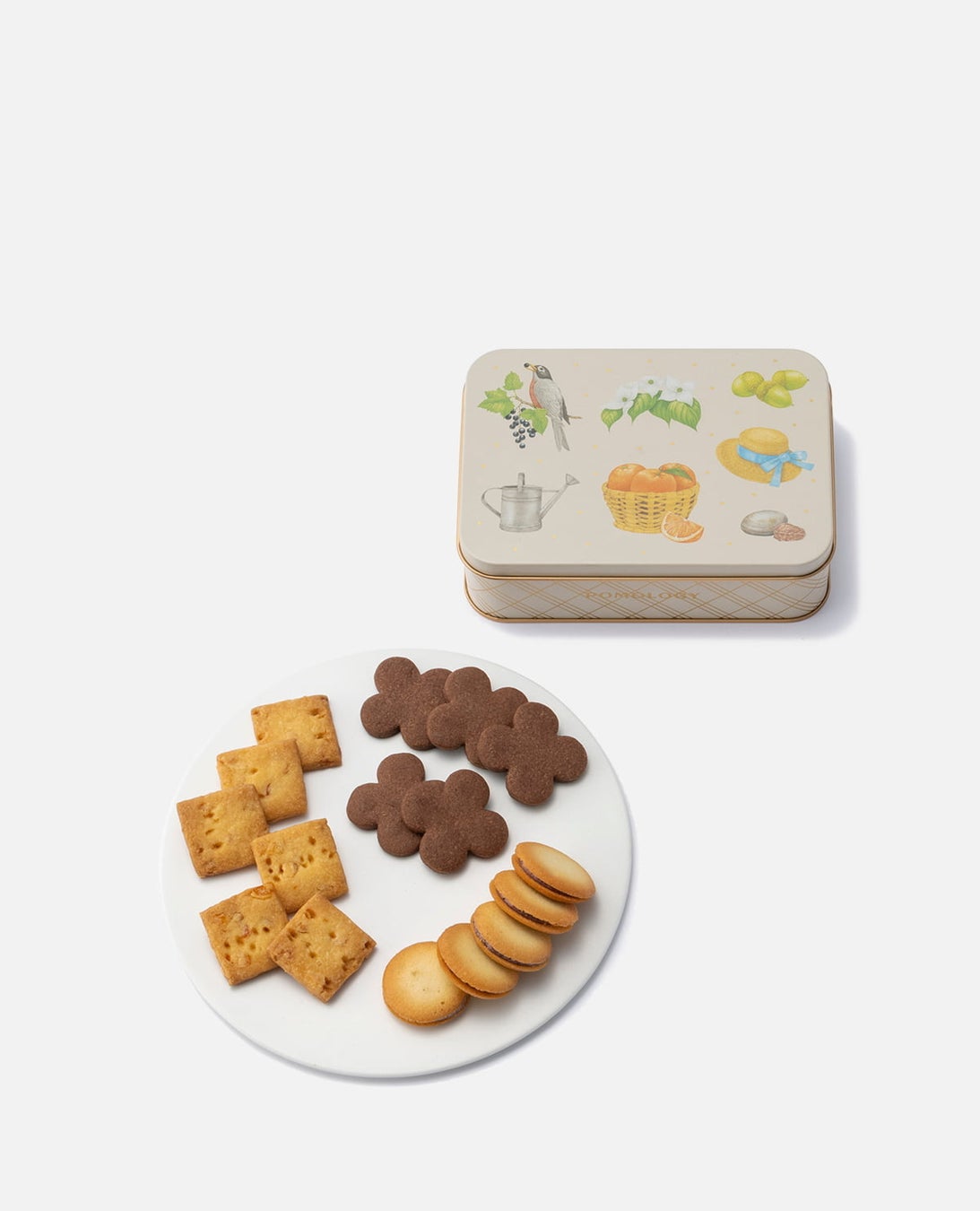 北海道産の小麦とバターを使用したクッキーボックス。この季節にぴったりなオレンジのショートブレッドと甘酸っぱいクロスグリのクッキーをセットしました。パッケージはイラストレーターの三宅瑠人氏が担当。夏のモチーフを描いたさわやかなデザインです。