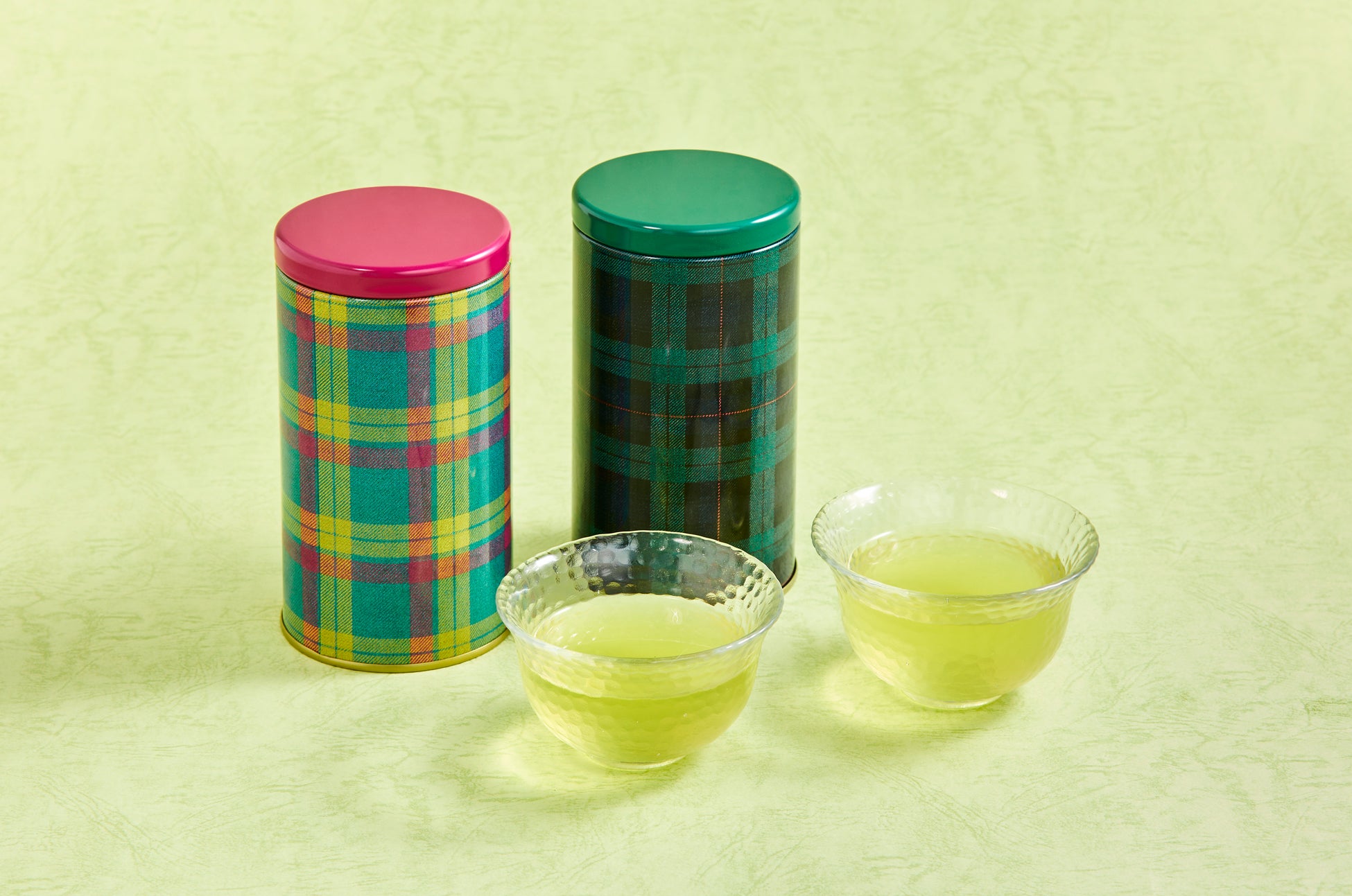 静岡抹茶入り煎茶ティーバッグと知覧抹茶入り煎茶ティーバッグを、伊勢丹のショッピングバッグの柄「マクミラン」と「ブラックウォッチ」でパッケージした限定ギフトです。
