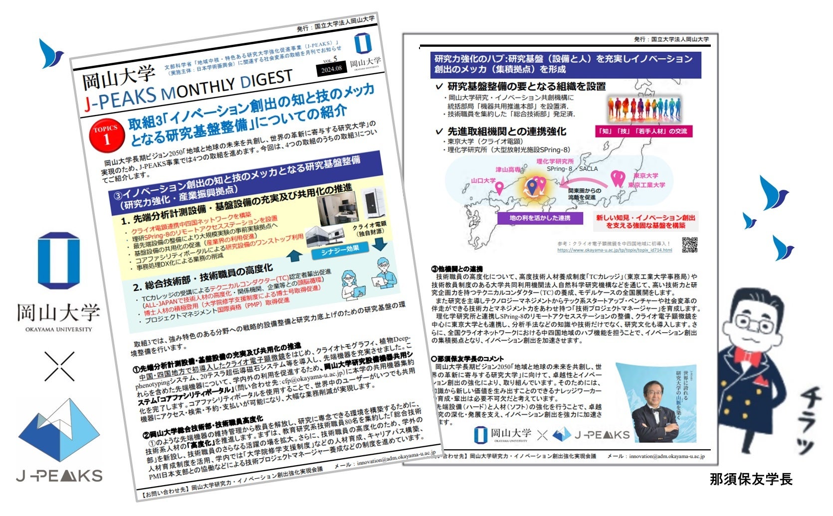 ・「岡山大学 J-PEAKS MONTHLY DIGEST」Vol.1刊行 ~「地域中核・特色ある研究大学強化促進事業(J-PEAKS)」に関連する岡山大学の社会変革の取り組みなどを月刊で発信!~
