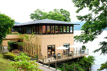 芦ノ湖畔に浮かぶように立つ、開業30年を迎えたデザートレストラン。名物のりんごパイをはじめ、季節の果物を活かしたデザートやティーインストラクターがブレンドした紅茶も魅力的です。テラス席から湖畔を眺めながら、優雅なティータイムが過ごせます。