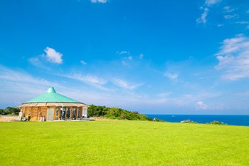 奄美大島のあやまる岬観光公園内にあり、ガジュマルをイメージしたユニークな建物が特徴です。天井が高く開放的で、ガラス張りの店内では奄美の自然と海絶景を眺めながらコーヒーや食事を楽しむことができ、周辺の観光案内や土産品なども揃っています。