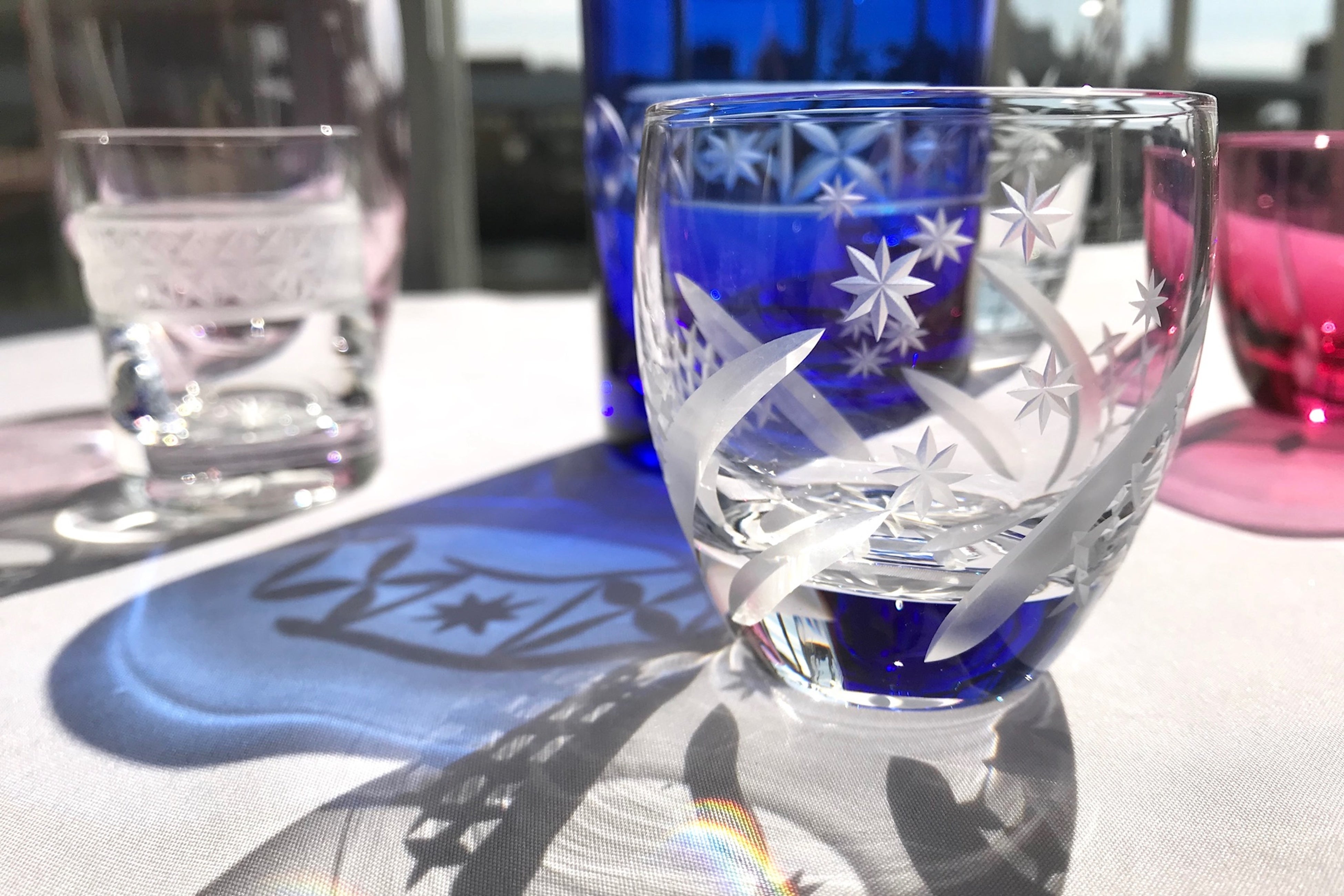 東京都浅草駅から徒歩30秒、吾妻橋のたもとに店舗を構えるグラス店です。 江戸時代から続く伝統工芸、切子体験教室やグラスギフトサイトも運営しています。