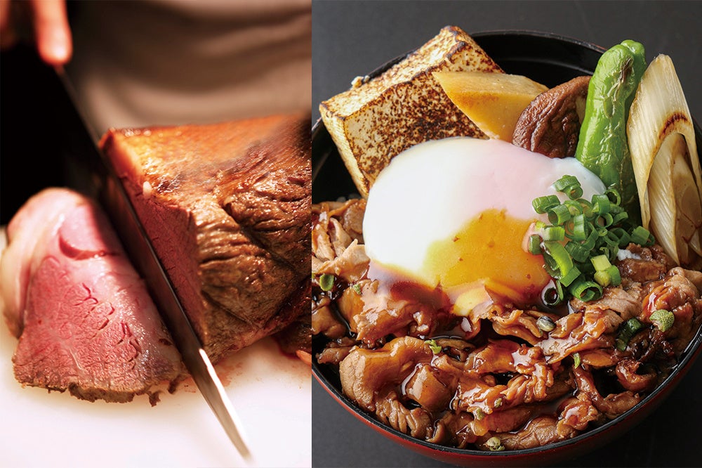 お食事メニューでは低温でじっくりジューシーに焼き上げるホテル伝統のローストビーフに大人気の「お好みバラちらし丼」、「すき焼き丼マックス」や天麩羅、窯焼きピッツァなど、ニューオータニで人気の和・洋・中のメニューをお届けいたします。また、ディナー限定の特別メニュー「黒毛和牛の鉄板焼きステーキ」もぜひご賞味ください!