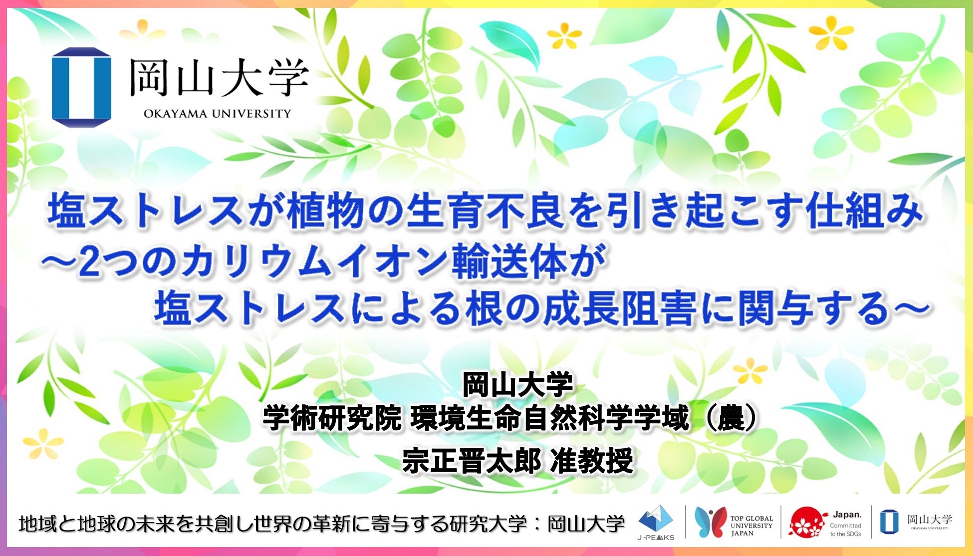 【岡山大学】塩ストレスが植物の生育不良を引き起こす仕組み -2つのカリウムイオン輸送体が塩ストレスによる根の成長阻害に関与する-