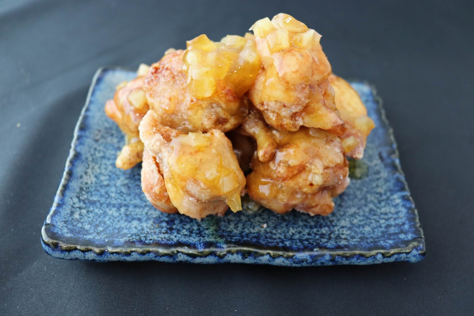 大分県の郷土料理、中津からあげの専門店<吉吾>。温故知新の精神を持ち続け、鶏の部位ごとに特徴を活かした味付けです。今回はチャイニーズアメリカン料理の檸檬チキンを吉吾風にアレンジしました。