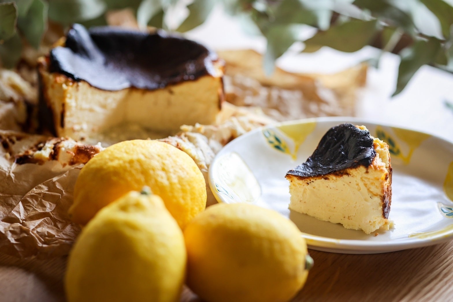 広島県三原市にある築120年の古民家にて手作りでスイーツを作る<むすびスイーツ>。むすびスイーツで1番人気のとろけるバスクチーズケーキの限定フレーバー。瀬戸田レモンの果汁、皮、身をふんだんに使用した贅沢な一品。レモンの味わいがしっかりしていながら、クリームチーズのコク、とろける食感も変わらず、夏でもさっぱりと食べ進めることのできる一品です。