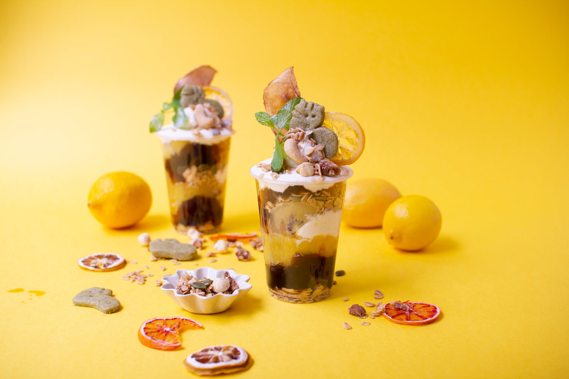 管理栄養士が監修、新しい食習慣をデザインするグラノーラ専門店<and/or(アンドオア)>と自家焙煎の珈琲豆を使用した香り高いドリンクを提供する<GUUUTARA COFFEE>がコラボしたパフェ。旬の果物をレモンと蜂蜜でマリネし、自家製のレモンマーマレードを混ぜ込んだデリケートなホイップクリームを使用。自家焙煎のコーヒー豆から作ったコーヒーゼリーとの組み合わせで、口の中で広がる豊かな風味と爽やかさをお楽しみいただけます。また、メープルグラノーラを3段階に分けて入れることで、グラノーラとクリーム、ゼリー、果物との丁寧な重なり合いにより、一口ごとに、食感と味わいが変化し、新しい発見をもたらしてくれます。