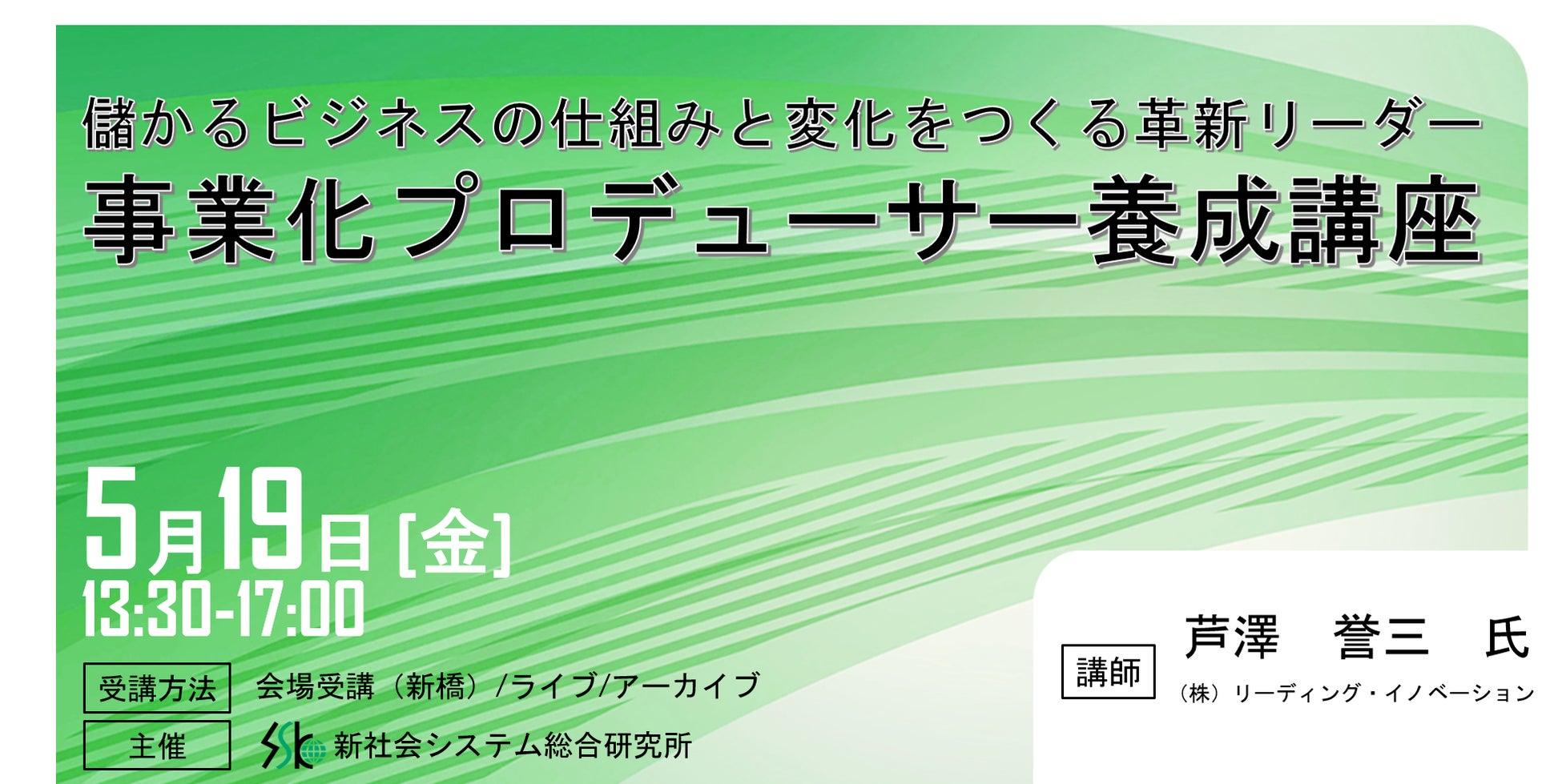 「事業化プロデューサー養成講座」と題して、(株)リーディング・イノベーション 代表取締役社長 新規事業開発上級職人 芦澤 誉三氏によるセミナーを2023年5月19日(金)に開催!!
