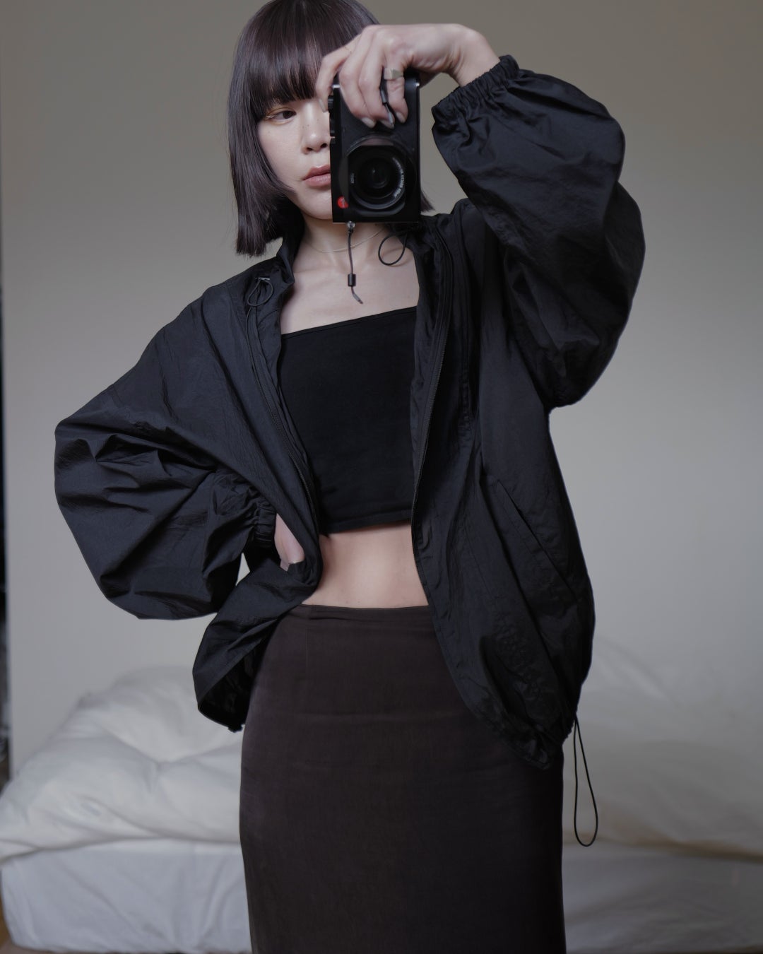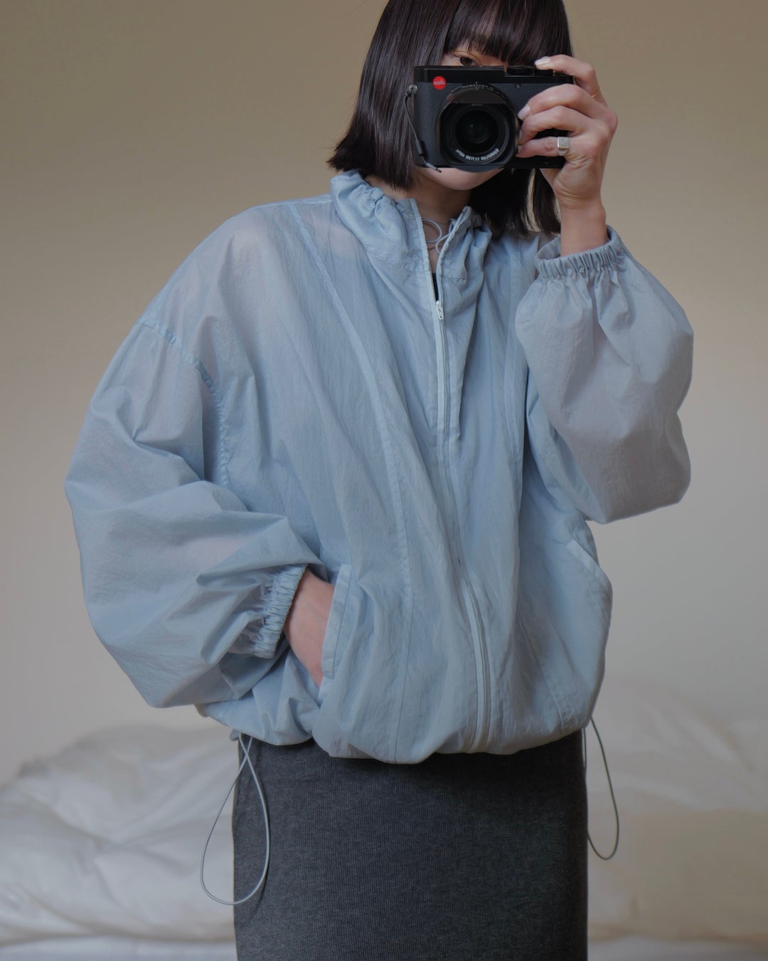 普段使いもジムなどワークアウトシーンも着用できるような一着を、という気持ちから完成したライトブルゾン。