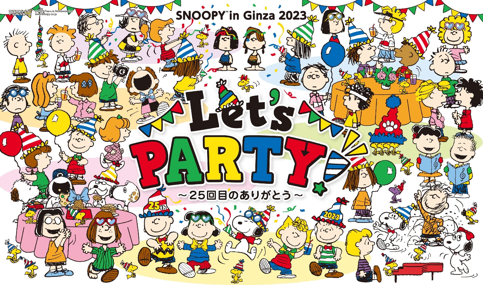 7月19日(水)~8月7日(月)の期間、銀座三越 新館7階 催物会場/本館・新館 各階では、スヌーピーのグッズが盛り沢山の人気イベント「スヌーピー in 銀座 2023」を開催。毎年恒例の本イベントは今年で25回目を迎えました。そしてなんと、今年は三越も創業350周年を迎える記念の年。そこで今年は「Let’s PARTY!~25回目のありがとう~」をテーマに、スヌーピーと仲間たちがお祝いしているようなパーティー感溢れるオリジナルアートを使用した商品が銀座三越を彩ります。雑貨やファッション、食品など毎日の気分を高める品々や、ここでしか手に入らない銀座三越限定のグッズをはじめとした豊富なアイテムが全館に登場します。